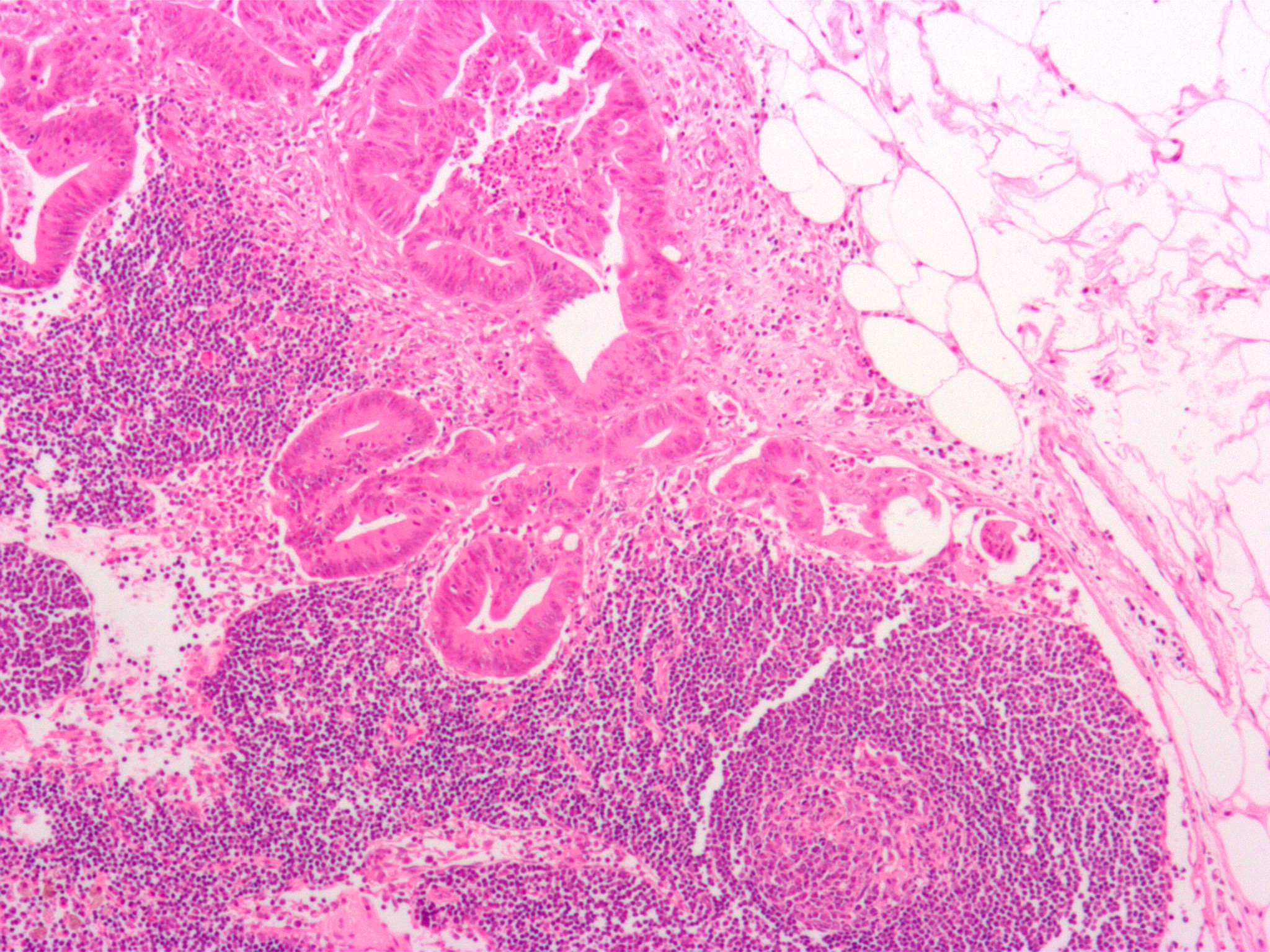 국소 암은 종양 세포가 림프절로 전이되어 림프절을 비대하게 만들 수 있다. 림프절 침범은 암 진단, 치료, 병기 설정에 중요한 영향을 미친다.[30] 암에 대한 검사 일환으로 림프절을 영상화하거나 외과적으로 제거할 수 있다. 제거된 림프절은 병리학 전문의가 현미경으로 검사하여 암세포(림프절로 전이된 세포) 증거가 있는지 확인한다. 암 병기, 치료, 예후는 림프절 전이 여부에 따라 달라진다.