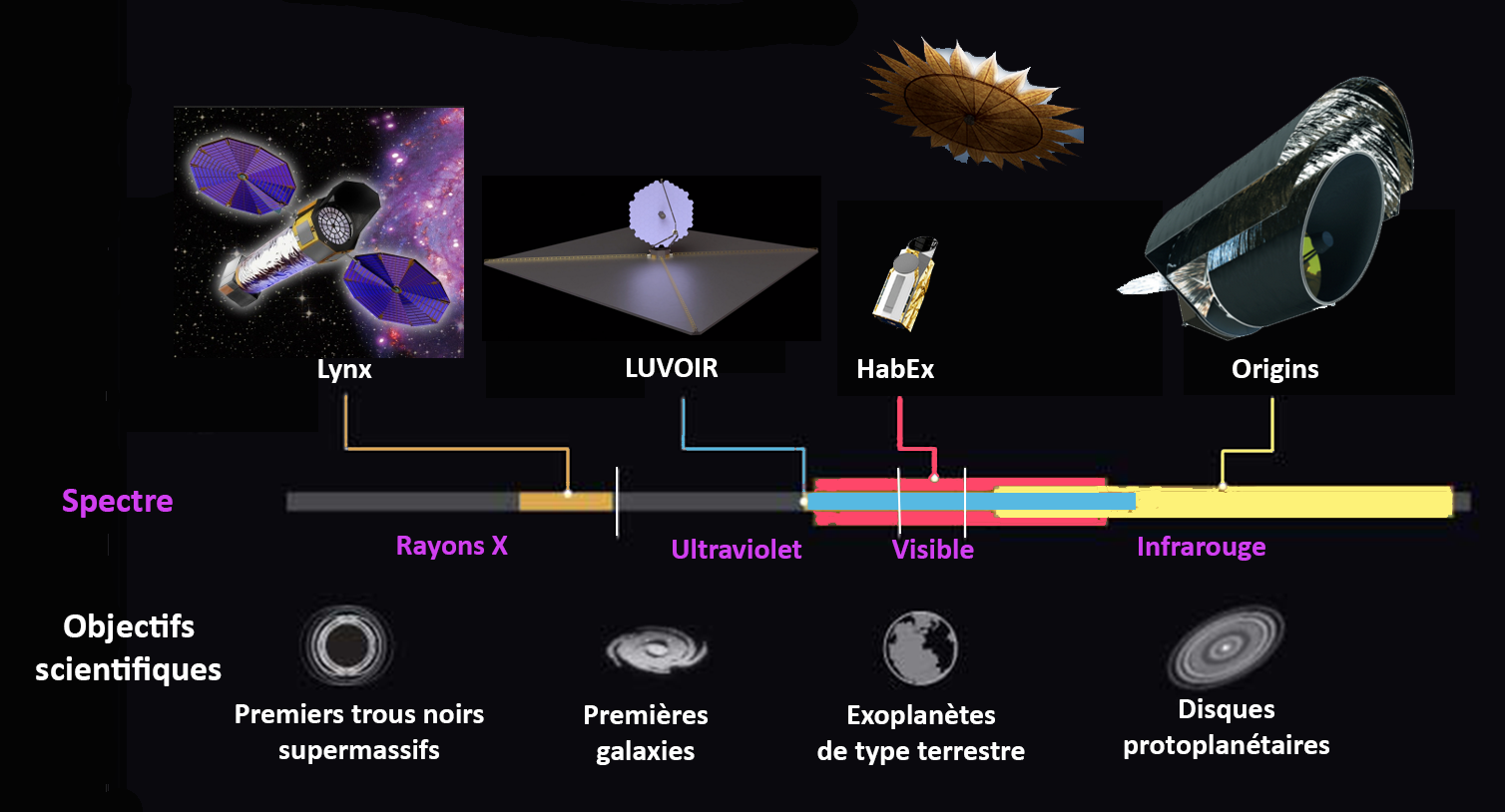 2016년, NASA는 플래그쉽 프로그램으로 HabEx, LUVOIR, 링크스 엑스선 관측선, OST를 최종후보로 선정했다.[11] 이는 2013년 천체 물리학 로드맵에서 제시된 권고에 따른 것이었다. NASA는 미래의 대형 전략 과학 임무를 위해 4가지 우주망원경 개념 연구를 설립했는데, ''링크스''(원래 X선 조사기로 불림) 외에도 거주 가능한 외계 행성 이미징 임무(HabEx), 대형 자외선 가시광선 적외선 조사기(LUVOIR), 오리진스 우주 망원경(OST, 원래 원적외선 조사기로 불림)이 있었다.