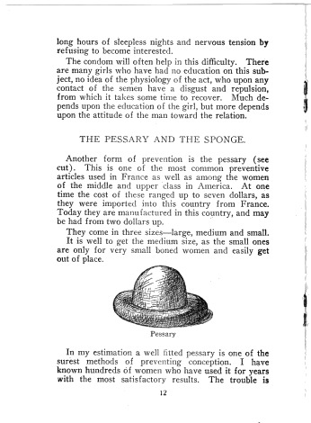 1915년 초, 마거릿 생어의 별거 중인 남편 윌리엄 생어는 반 부도덕 정치인 앤서니 컴스톡의 대표에게 ''가족 제한(Family Limitation)''의 사본을 건넸다. 윌리엄 생어는 재판을 받고 유죄 판결을 받아 30일 동안 감옥에 수감되었고, 시민의 자유 문제로서 피임에 대한 관심을 불러일으켰다.[37][38][39] 마거렛의 두 번째 남편인 노아 슬리는 그녀의 평생의 업적에 도움을 주었다. 1928년 슬리는 캐나다를 통해 3-In-One Oil 상자에 숨겨 뉴욕으로 횡경막을 밀수했다.[20][40] 그는 나중에 미국 최초의 합법적인 횡경막 제조업체가 되었다.[41]