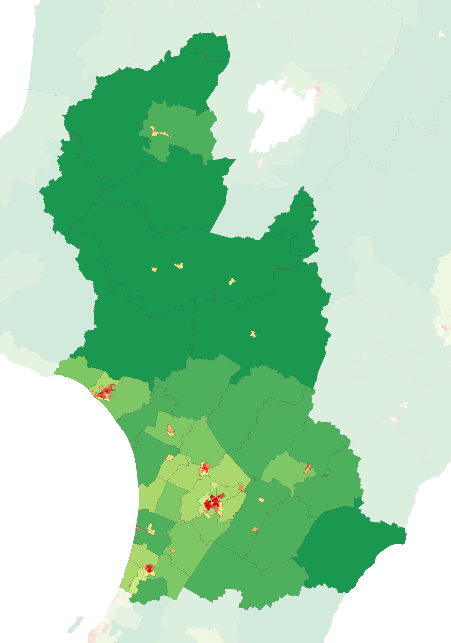 해외 출생 인구 비율은 15.9%로, 전국 평균인 28.8%보다 낮았습니다.[15] 2018년 인구 조사에서는 유럽계/파케하 79.4%, 마오리족 22.9%, 태평양 제도 사람들 4.2%, 아시아계 6.4%, 기타 민족 2.2%였습니다 (여러 민족 선택 가능).[16]