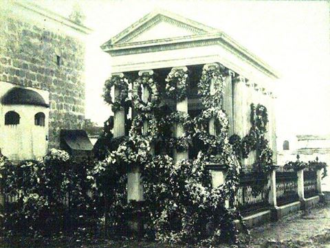 에스트라다 카브레라의 미네르바 신전, 과테말라 시, c. 1905. 아치트레이브에는 ''마누엘 에스트라다 카브레라 대통령이 학구적인 청소년에게''라는 문구가 새겨져 있다.