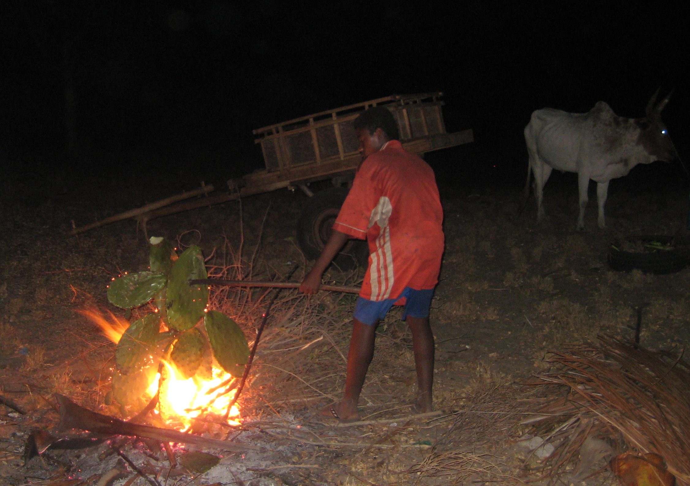 손바닥선인장(현지어 '라케타'(raketa|[raˈketə̥]mg))은 마다가스카르 남부에서는 '사카폰드라노'(sakafon-drano|[saˈkafuˈɳɖʳanʷ]mg, "물의 음식")라고도 불리는데, 1769년 프랑스인 돌리지 드 모드브 백작이 신세계에서 톨라냐로(옛 포르도팽)의 프랑스 정착지로 가져왔다.[22][121] 이 식물은 섬 남부 전역으로 퍼져 마하팔리족과 바라족 목축민들의 기본적인 식량 작물이 되었다. 손바닥선인장 열매 6개 정도를 먹으면 물을 대신할 수 있었고, 가시를 제거한 편평줄기(엽상경)는 제부 소에게 영양과 수분을 공급하는 중요한 사료가 되었다. 손바닥선인장의 도입은 남부 목축민들의 정착 생활과 목축 효율성을 증진시켰으며, 결과적으로 해당 지역의 인구 밀도와 가축 수를 늘리는 데 기여했다.[22][121]