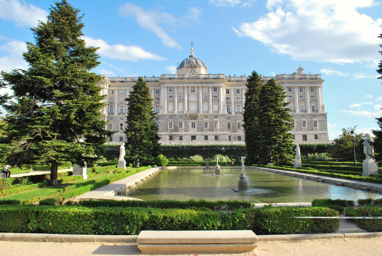 마드리드 왕궁은 9세기에 건설된 성곽을 기원으로 하며, 이후 여러 차례 증축과 개축을 거쳐 현재의 모습을 갖추었다. 1734년 화재로 소실된 구 성곽 자리에 펠리페 5세의 명으로 새로운 궁전이 건설되었으며, 1764년 카를로스 3세가 처음으로 거주했다. 왕궁 내부에는 왕립 무기고, 왕립 약국, 도서관 등이 있으며, 19세기 이후에도 여러 차례 개조되었다. 왕궁 주변에는 아르메리아 광장, 오리엔테 광장, 캄포 델 모로 정원, 사바티니 정원 등이 조성되어 있다. 현재 스페인 왕실은 공식 행사 시 이 왕궁을 사용한다.