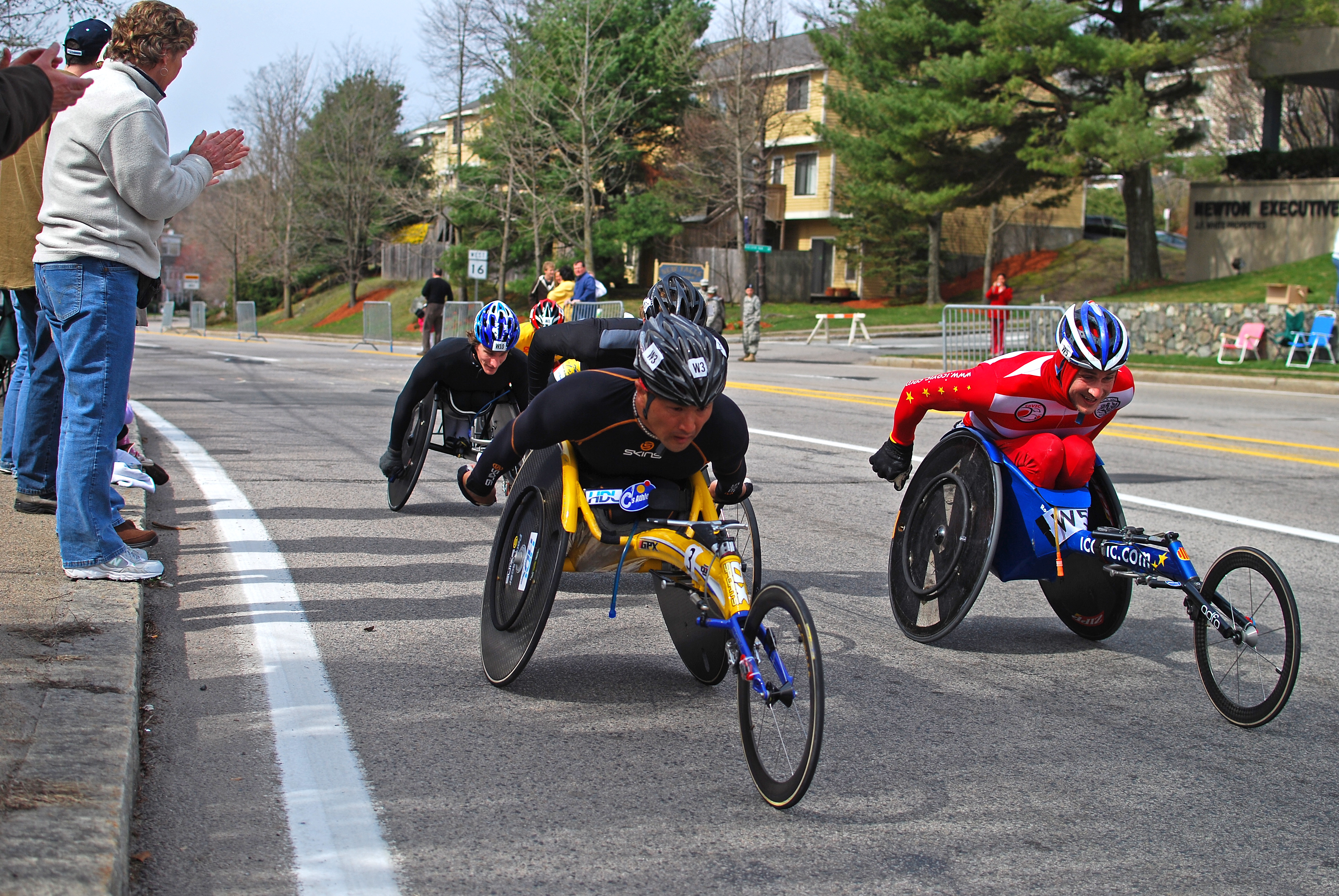 많은 마라톤 대회에서 휠체어 부문이 있으며, 일반적으로 휠체어 경주 부문 참가자들은 달리는 참가자들보다 먼저 경주를 시작한다.