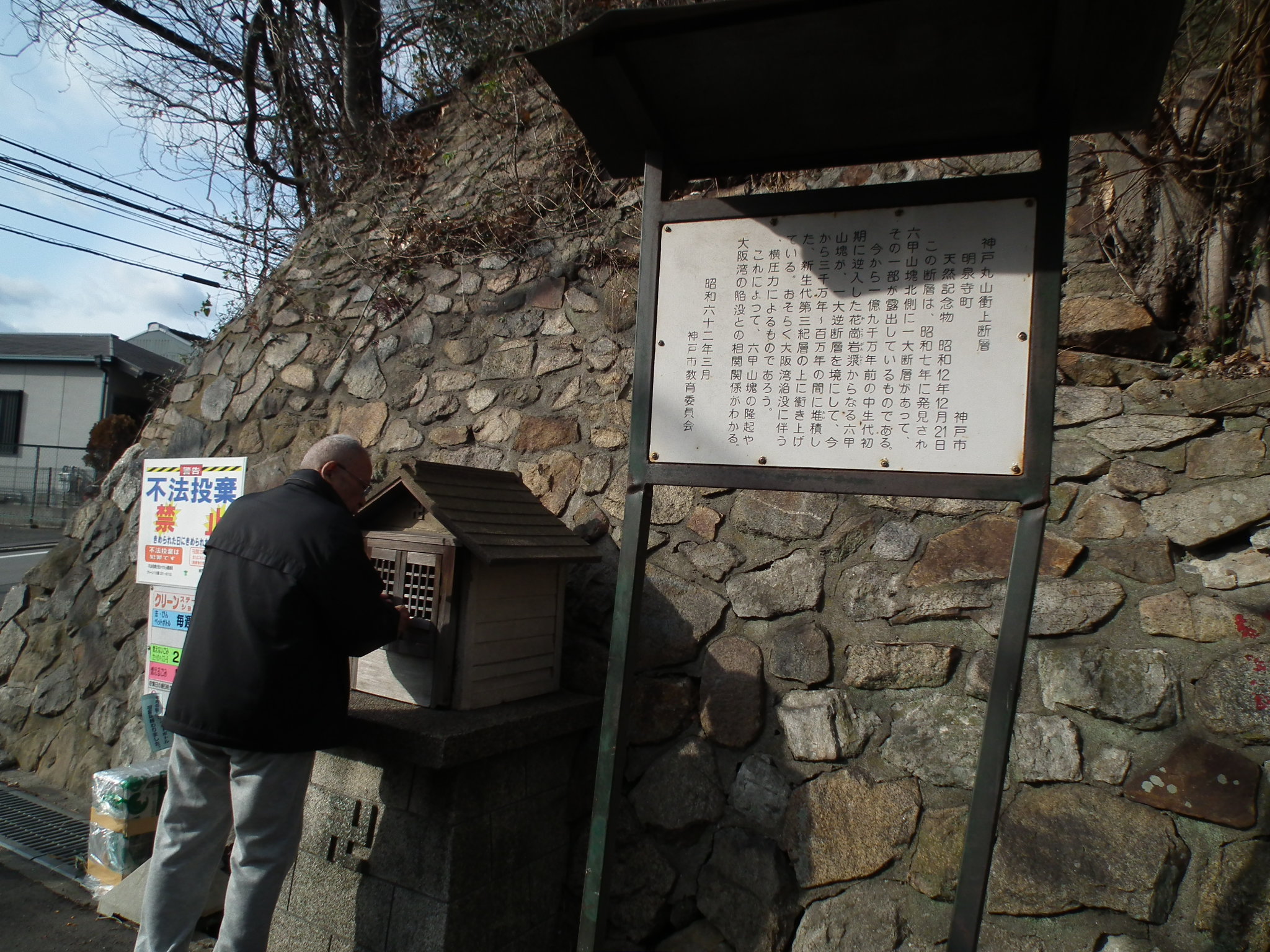 롯코 산괴 북부에 있는 대단층의 일부로, 1932년 교토대학 조교수였던 우에지 토라지로(上治寅治郎)에 의해 발견되었으며 그 규모는 256.9m2이다.[2] 단층면을 기준으로 상반에는 중생대 초기, 약 1억 9000만 년 전의 것으로 추정되는 화강암이 있고, 하반에는 약 1500만 년 전에 생긴 지층이 있다.[2] 즉, 오래된 지층이 새로운 지층 위에 겹쳐 있는 역전 현상이 나타난다.[2] 이는 오사카 만의 함몰에 의한 큰 지각변동의 결과 롯코 산의 기반을 이루는 화강암이 주변의 고베 층군을 누르고 올라왔기 때문일 것으로 추정된다.[2] 이 단층이 천연기념물로 지정된 것은 쇼와 초기 당시 긴키에는 존재하지 않을 것이라 추측했던 역단층이며, 게다가 단층면이 저각도의 스러스트 단층이었던 것을 중시했기 때문이다.[2]