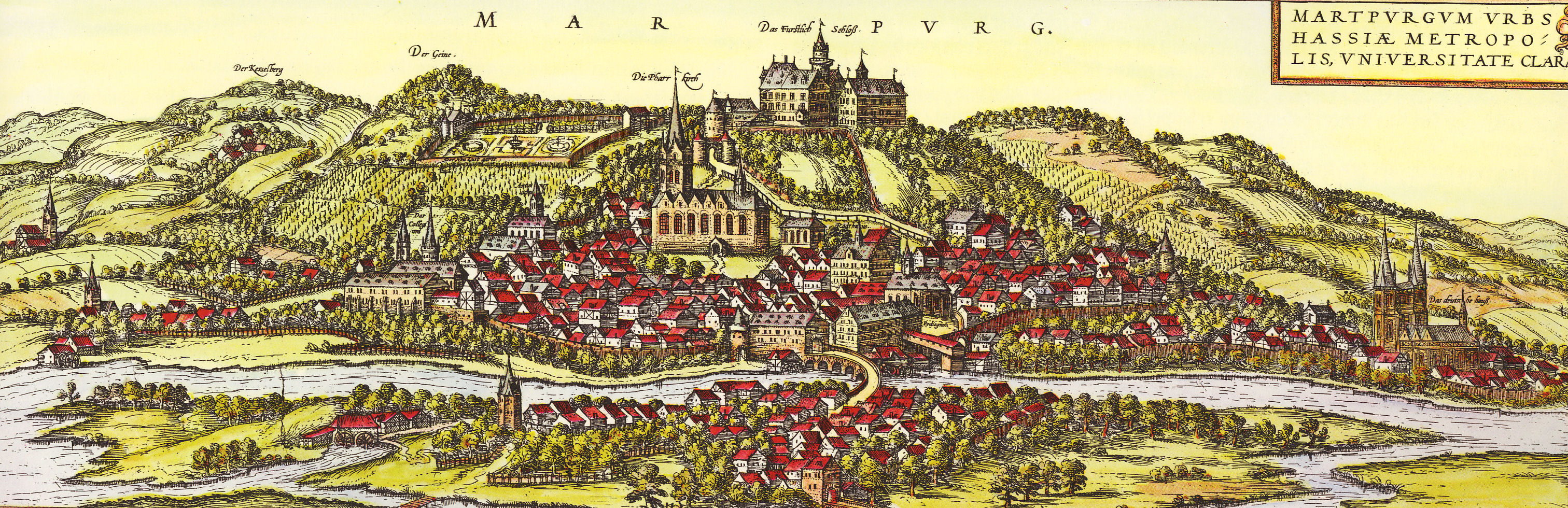 성녀 헤센의 엘리자베트의 마지막 거처이자 묘소로 알려진 오래된 도시 마르부르크는 옛 성 아래 산기슭에 구불구불하고 경사진 지형에 자리 잡고 있다. 200년도 더 전에 마르부르크 교수 요한 하인리히 융-슈틸링은 이 도시의 환경을 "아름답고, 매우 쾌적하다"고 칭찬했다.