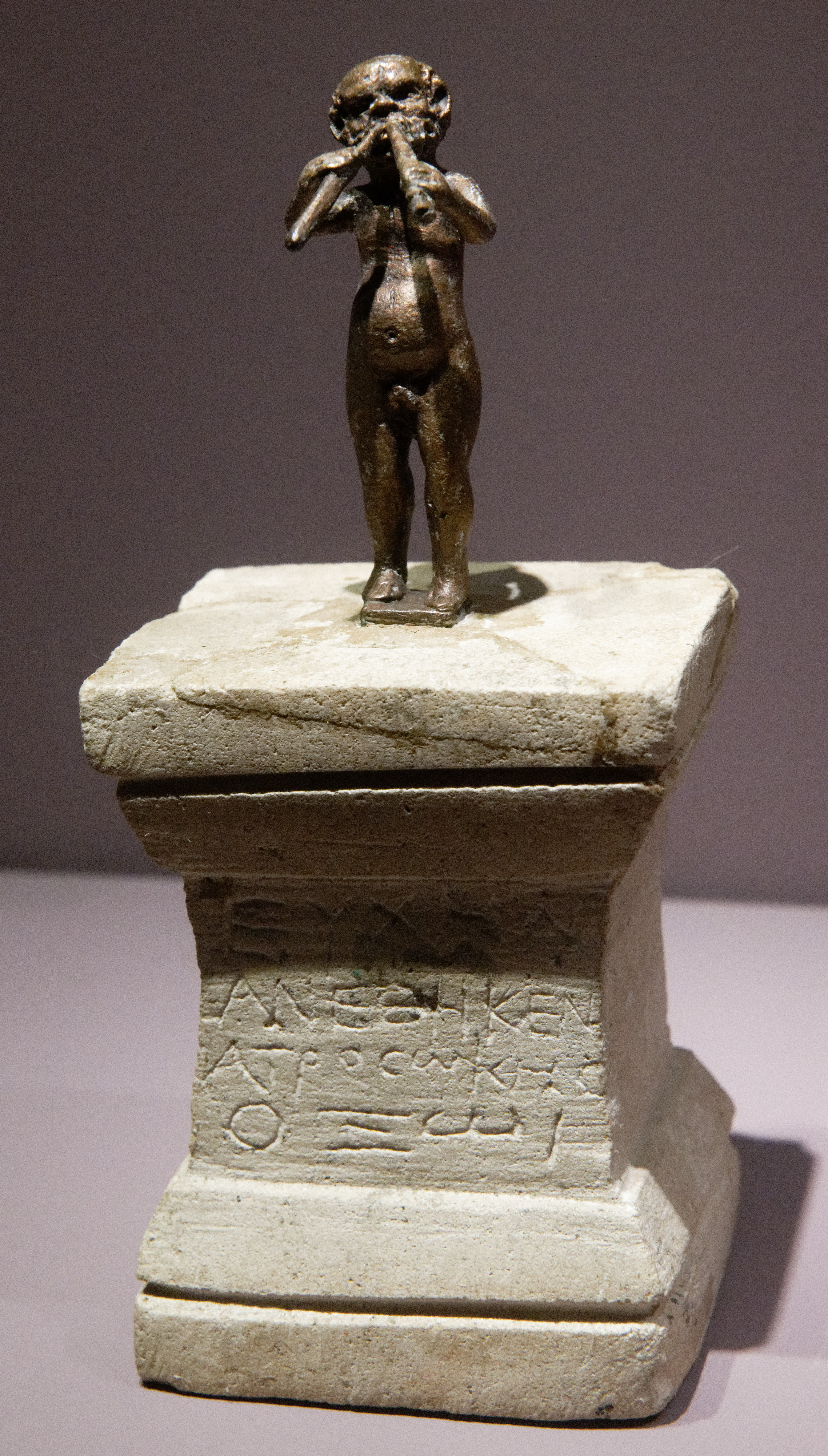 그러나 나중에 멜라니피데스의 이야기는 정설로 받아들여졌고,[15] 아테네 조각가 미론은 이를 바탕으로 청동 조각상을 제작하여 기원전 440년경 파르테논 서쪽 정면에 설치했다.[15] 서기 2세기에 여행 작가 파우사니아스는 이 조각상들을 보고 "아테나가 여신이 영원히 버리고 싶어 했던 플루트 [아울로스]를 집어든 실레노스 마르시아스를 치는 조각상"이라고 묘사했다.[17] 마르시아스는 아울로스라는 이중 리드, 두 개의 관으로 된 목관 악기(→ 오보에, 코르 앙글레)의 명인이었다. 그 악기는 아테나가 만든 것이었지만, 불 때 뺨이 부풀어 오르는 것을 다른 신들이 놀린 탓에, 주운 자에게 재앙이 닥치도록 저주를 걸어 땅에 던져 버린 것을 마르시아스가 주운 것이었다.