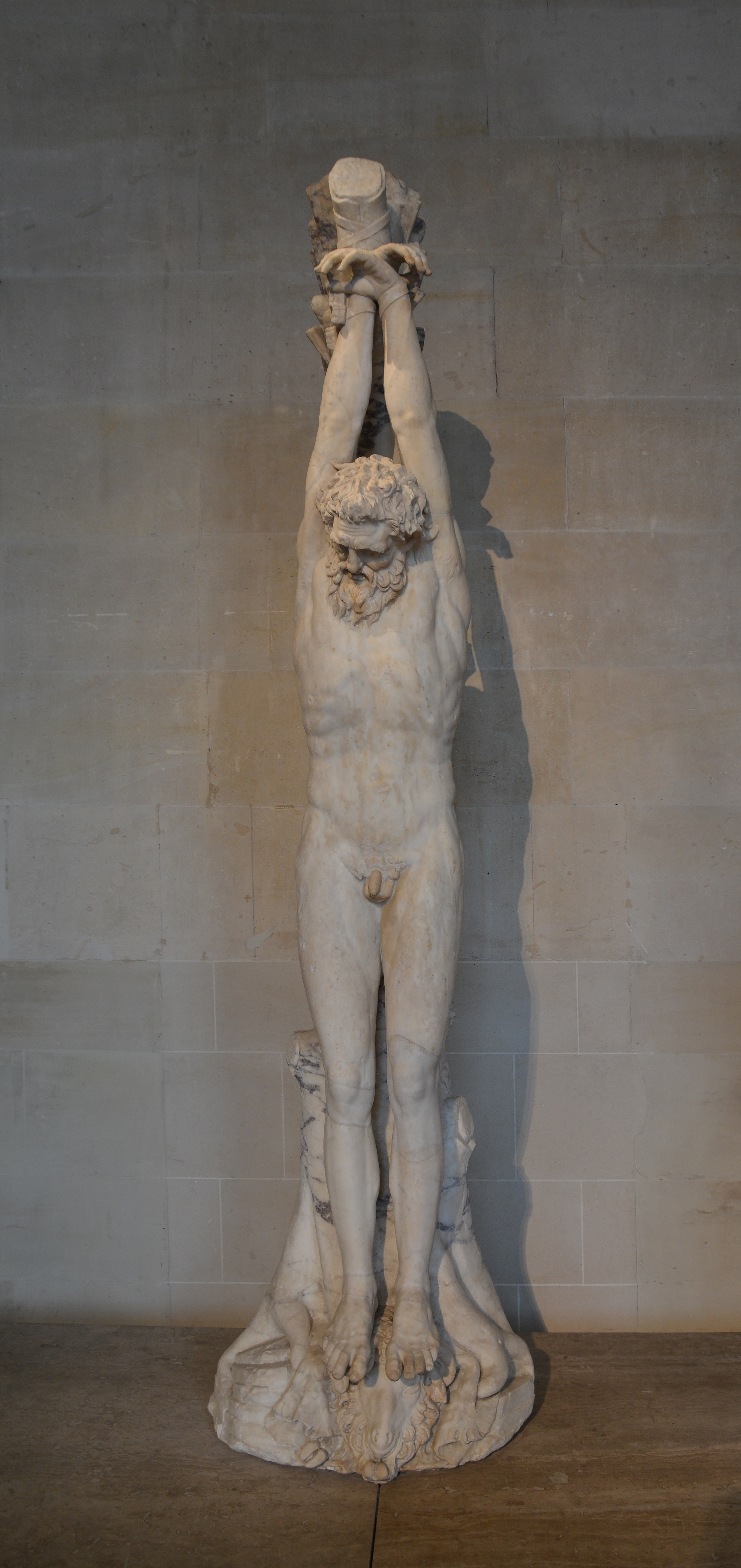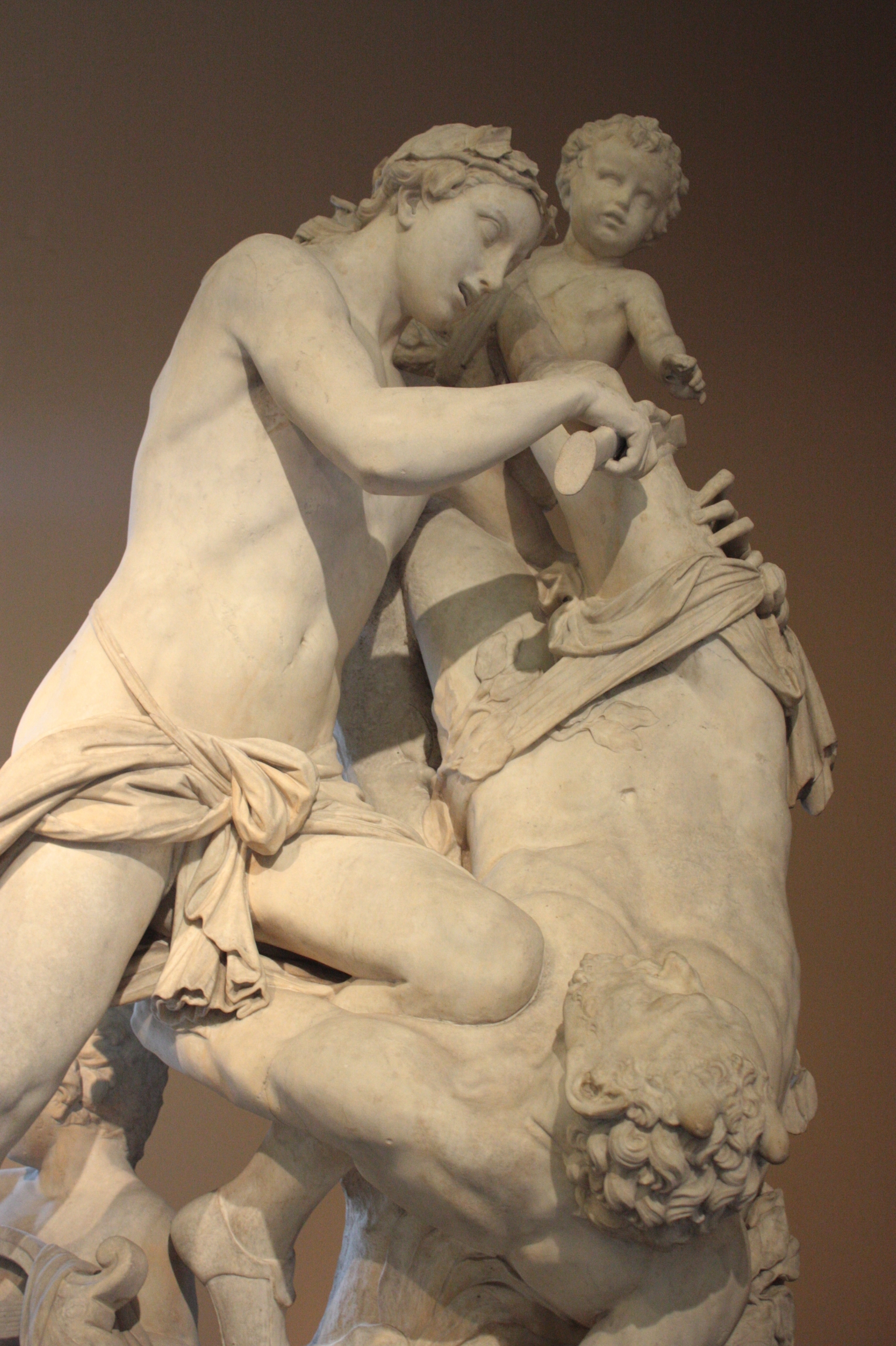 마르시아스는 그리스 신화에 등장하는 인물로, 아울로스라는 악기의 명인이었다. 아테나가 버린 아울로스를 얻어 연주 실력을 키웠고, 아폴론과 음악 시합을 벌였으나 패배하여 산 채로 가죽이 벗겨지는 형벌을 받았다. 마르시아스는 아울로스의 디오니소스적 성격과 아폴론의 키타라가 상징하는 아폴론적 성격의 대립을 보여주는 인물로 해석되기도 하며, 후대 예술 작품에서 다양한 모습으로 묘사되었다. 로마에서는 자유로운 발언과 저항의 상징으로 여겨졌으며, 정치적 의미를 내포하는 조각상으로 숭배되었다.