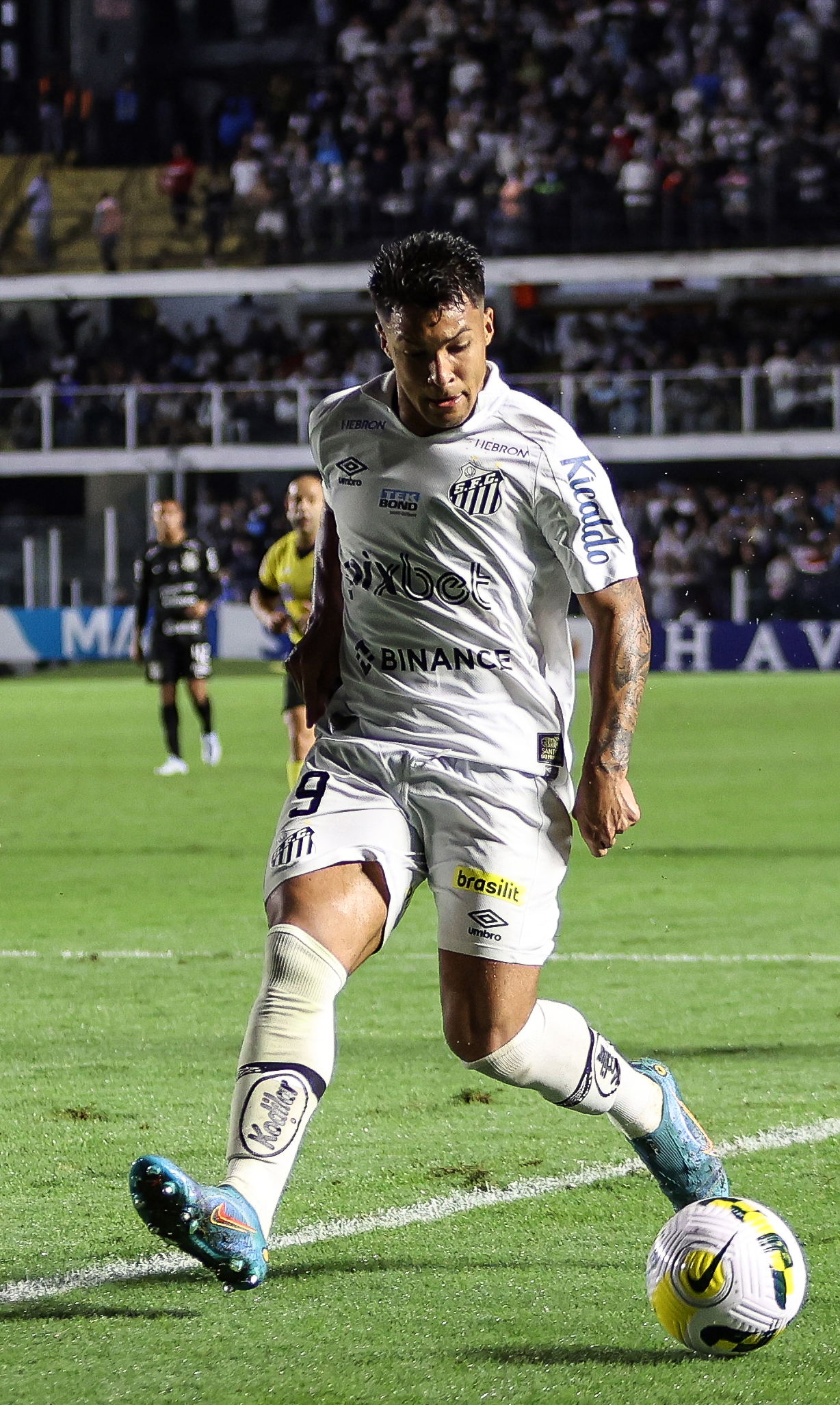 2021 시즌에는 주로 교체 선수로 출전했고, 2022년 1월 15일 산투스와 2026년까지 계약을 갱신했다.[10] 이후 주전 선수로 자리 잡은 그는 꾸준히 득점을 기록하며 2023년 10월 8일 파우메이라스전 결승골로 구단 역사상 50위권 득점자에 이름을 올렸다.[11]