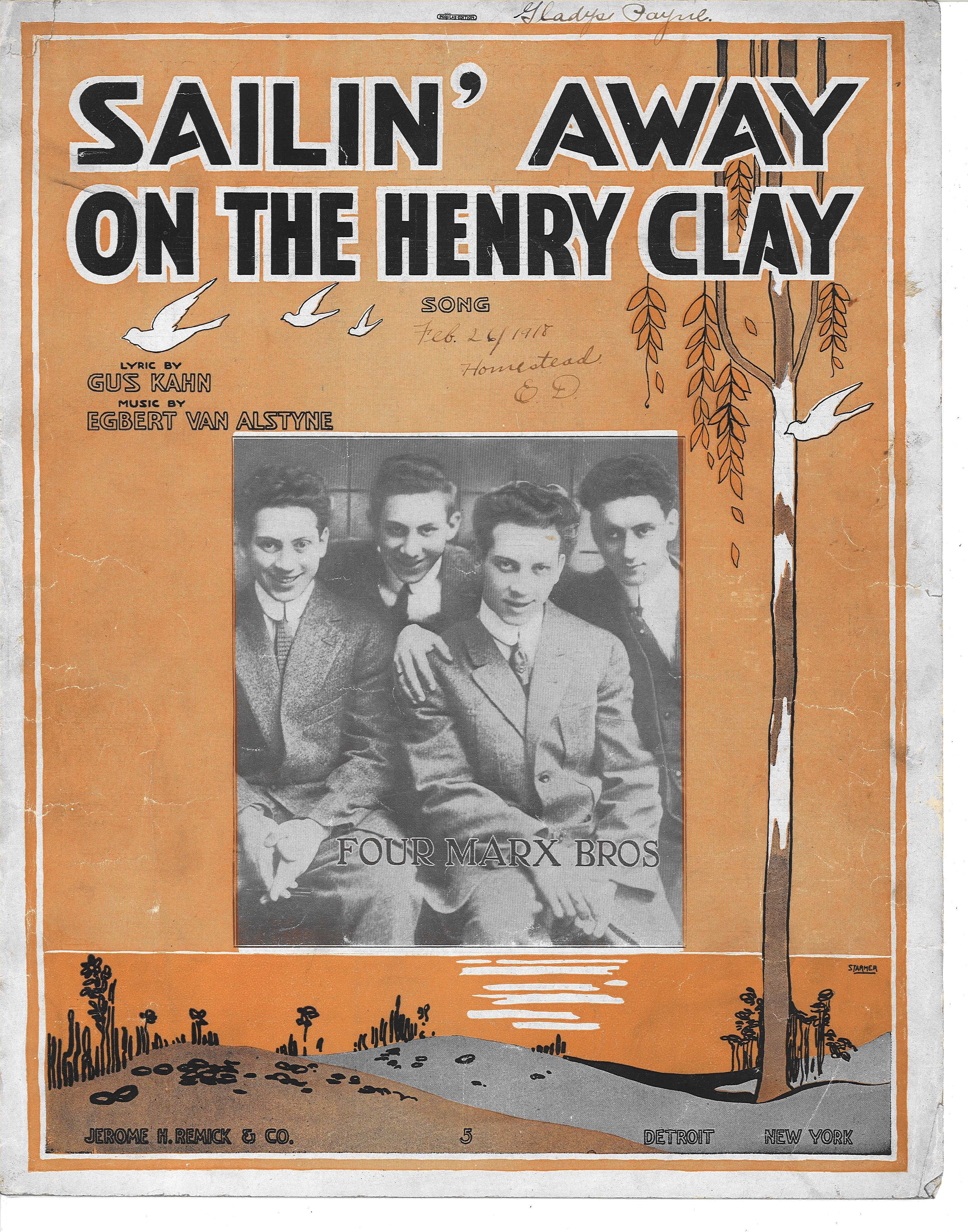 이들의 연기는 노래와 코미디에서 코미디와 음악으로 천천히 발전했다. 형제들의 스케치 "하이 스쿨의 즐거움"(Fun in Hi Skule)에서는 그루초가 하포, 검모, 치코가 학생으로 등장하는 교실을 주재하는 독일 억양의 교사로 등장했다. 학교 연극의 마지막 버전은 삼촌 알 셰언이 쓴 ''다시 집으로''(Home Again)라는 제목이었다. ''다시 집으로'' 투어는 1915년 미시간 플린트에 도착했고, 14살의 제포가 5명의 마르크스 형제가 함께 무대에 등장한 유일한 시기로 여겨지는 이 순간에 합류했다.[19] 검모는 "배우가 되는 것보다 낫다!"[20]라는 생각으로 제1차 세계 대전에 참전하기 위해 떠났다. 제포는 마지막 보드빌 시대와 브로드웨이 극장으로의 도약, 그리고 파라마운트 영화에 출연하면서 그를 대신했다.
