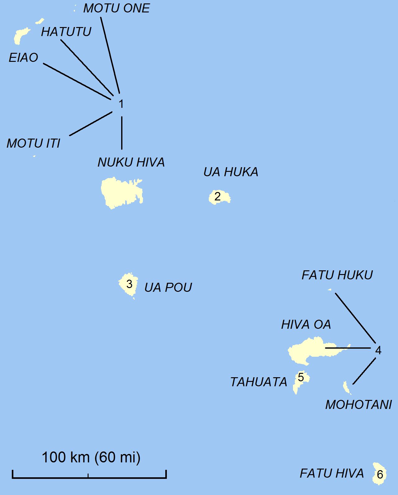 주요 섬 | 누쿠히바 우아포우 우아후카 히바오아 파투히바 타후아타 |
