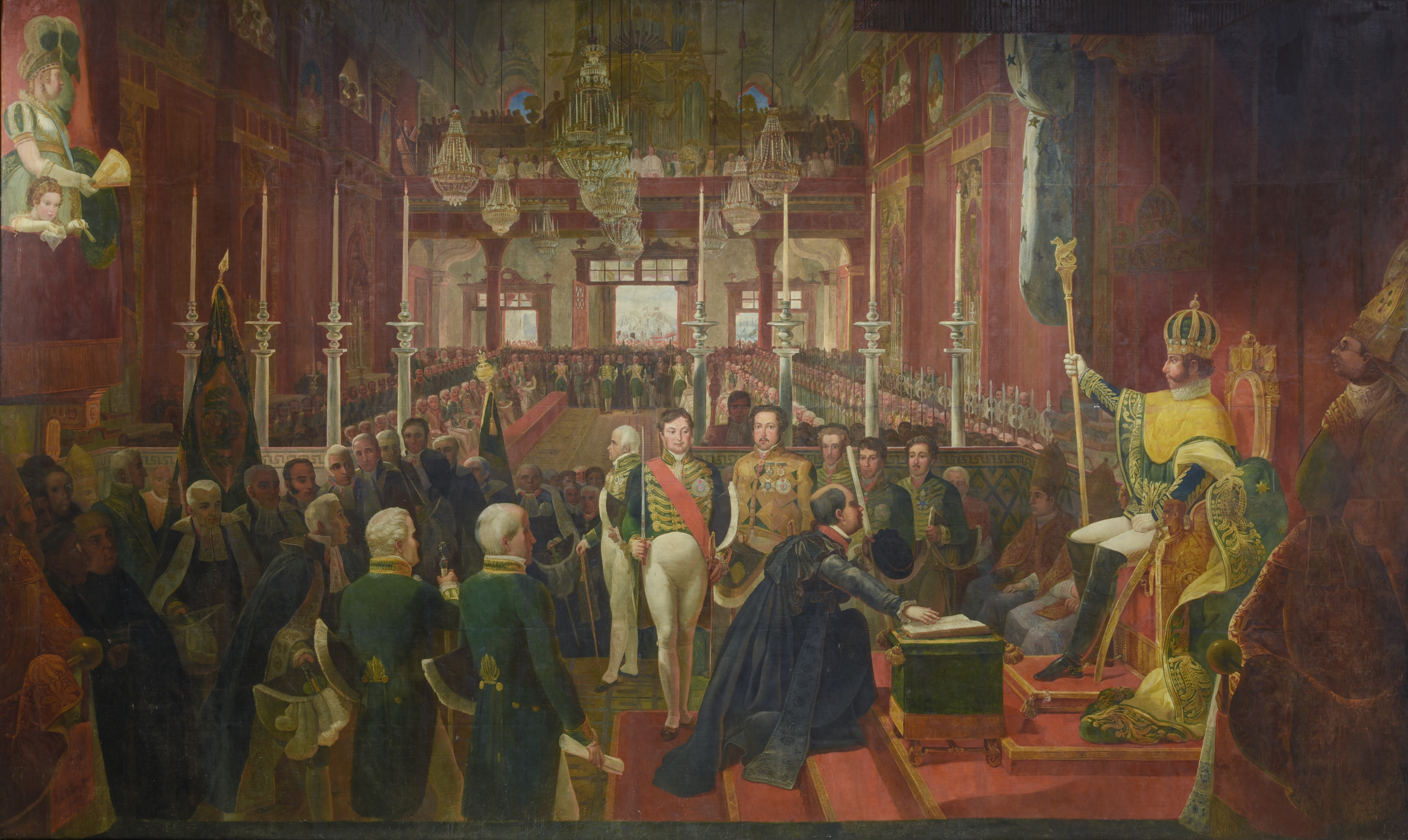 장-바티스트 데브레의 ''1817년 11월 5일, 돔 페드루, 왕족, 궁정에 의해 여대공 마리아 레오폴디나를 맞이함''
