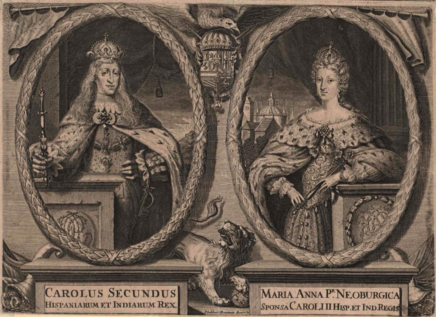 1690년 스페인 국왕 카를로스 2세는 첫 번째 왕비 오를레앙의 마리 루이즈가 사망하자 후계 문제로 인해 마리아 아나와 결혼했다. 마리아 아나의 시어머니 오스트리아의 마리아나는 레오폴트 1세의 누나로, 두 사람은 고부 관계 이전에 인척 관계였다.[3][4]