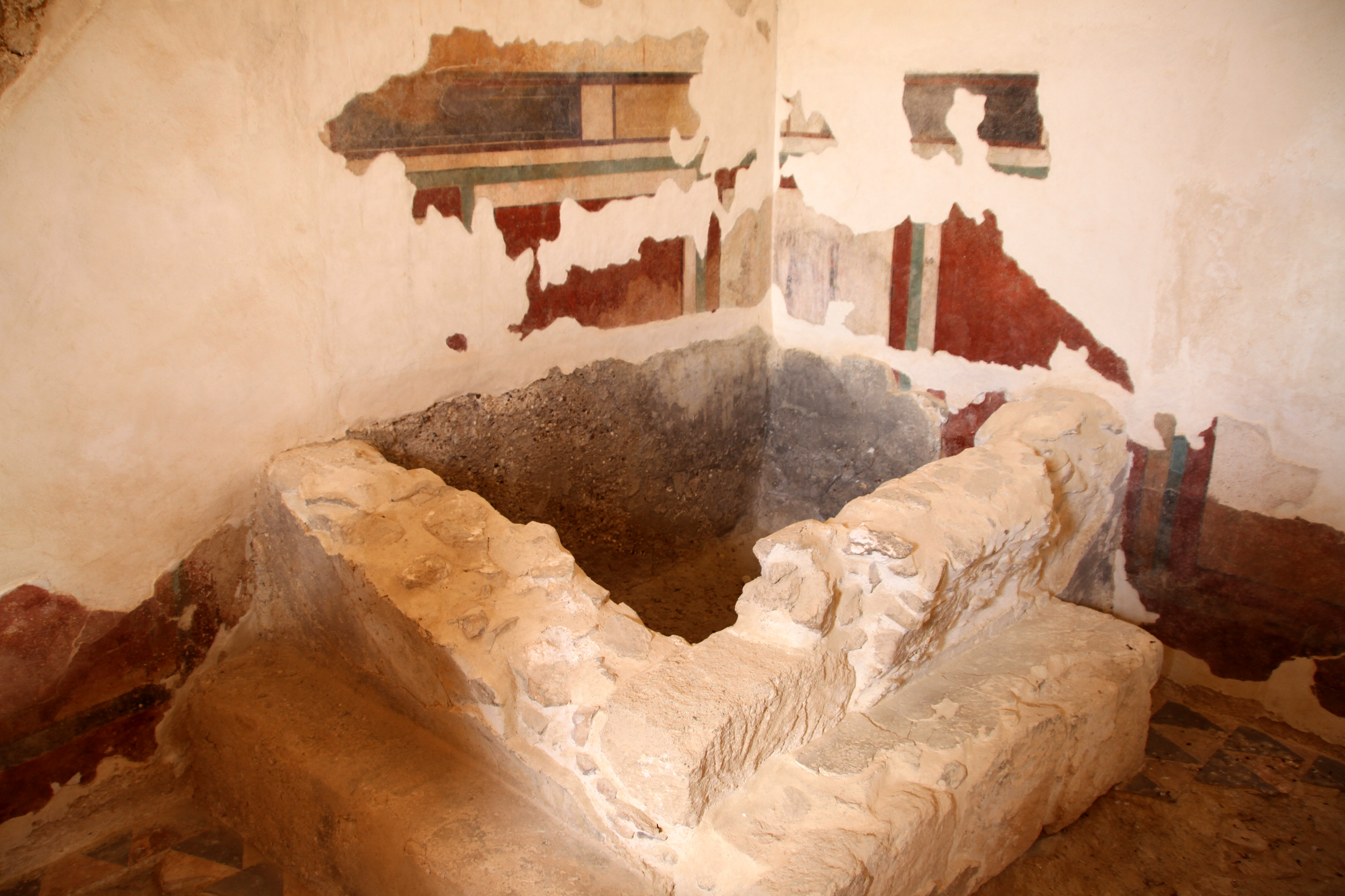 목욕탕에서 발견된 유해 중 남성들의 나이는 40세와 20~22세, 또는 22세와 11~12세, 또는 치아 유해를 기반으로 16~18세로 추정되었다. 여성의 나이는 17~18세로 추정되었다.[35][37] 남성들의 골격 유해는 불완전했다. 여성의 경우 뼈는 발견되지 않았지만, 땋은 머리카락(완전한 머리카락)이 발견되었다.[35]