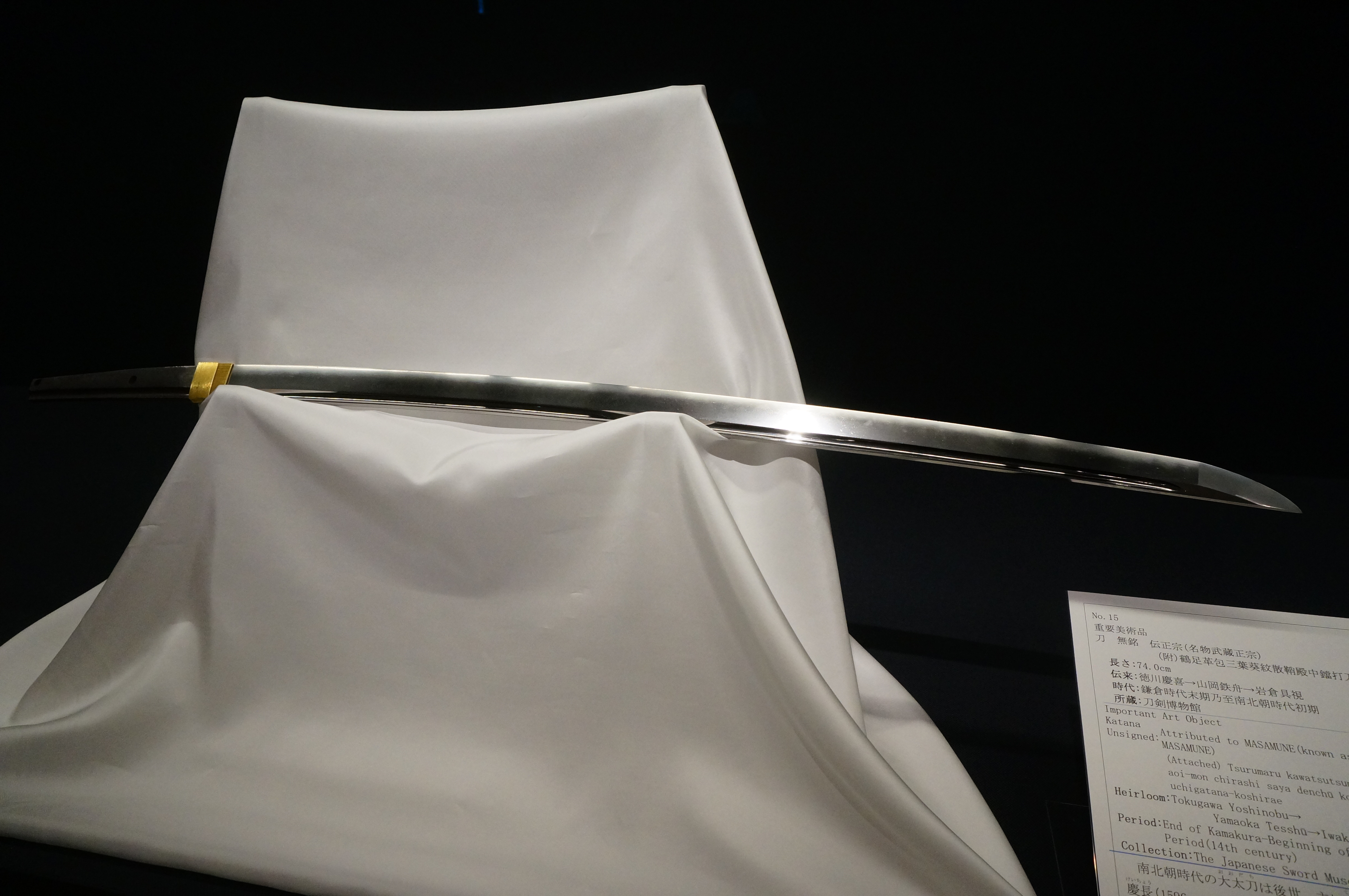 마사무네의 진품으로 현존하는 것은 타치와 단도가 있고, 와키자시도 전해진다.[38] 마사무네는 몽골의 침략과 같은 혼란한 시대적 배경 속에서 몽골군의 가죽 갑옷에 대항하기 위해 칼날 폭이 넓고 두께가 얇은 형태의 칼을 만들었다.