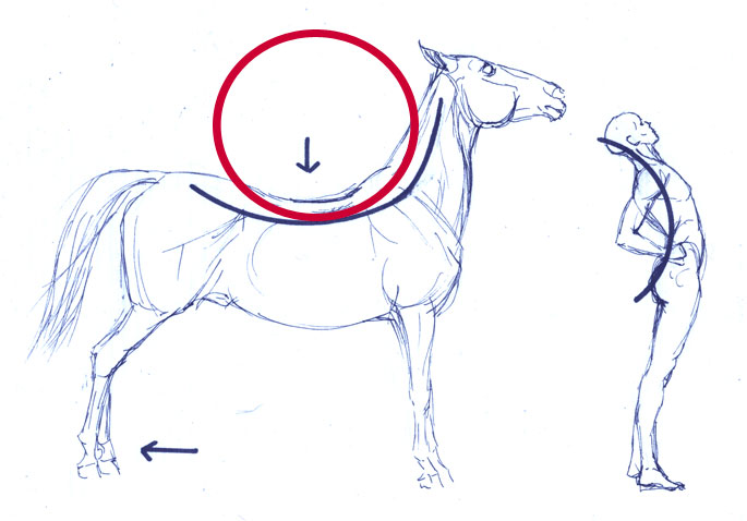 말의 요통은 다양한 원인으로 발생할 수 있는데, 좋지 않은 승마 기술도 그중 하나이다.[1] 좋지 않은 자세를 가진 기수는 말의 등에 직접적인 비정상적인 압력을 가하거나, 간접적으로 요통을 유발할 수 있다.[1] 잘 맞지 않는 재갈과 굴레 또는 좋지 않은 손은 입의 통증을 유발하여 말이 목을 들고 입의 압력을 피하기 위해 등을 긴장시키면서 이차적인 요통을 유발할 수 있다.[1]