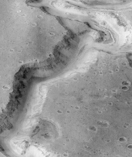 화성은 10km 이상의 깊이에 층상 지각을 가지고 있는 것으로 밝혀졌다. 이러한 층을 만들기 위해서는 많은 양의 물질이 풍화, 운반 및 퇴적되어야 했다.[14]-- |