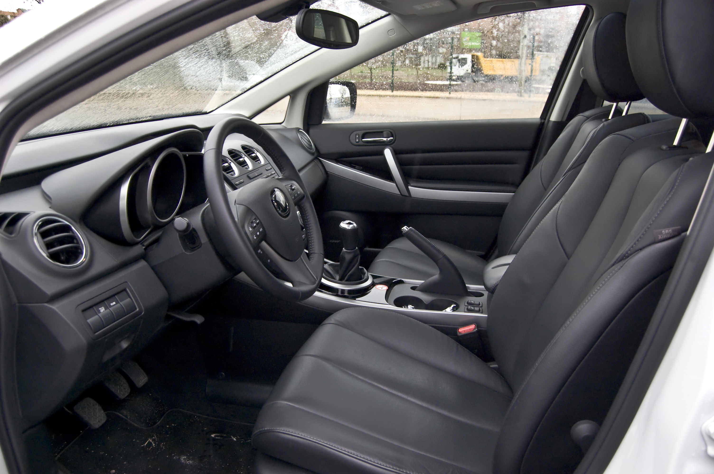 초기형 CX-7의 스티어링 휠은 3세대 MX-5 및 비안테와 공유한다. 페이스리프트 모델은 3차원 다이얼이 특징인 블랙아웃 미터, 3.5인치 STN 흑백 및 4.1인치 TFT 컬러 MID(계기판 상단 위치), 블루투스 호환성, 사각 지대 모니터링 시스템을 갖춘 새로운 실내 게이지를 적용했다.[10][11]