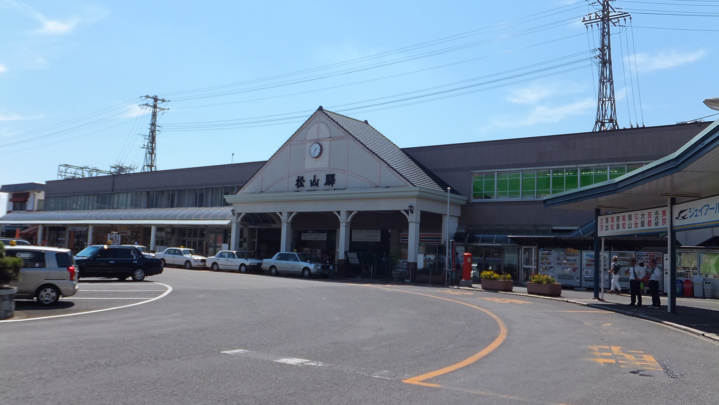1927년 4월 3일 일본국유철도(현재의 요산선)가 마쓰야마까지 연장되면서 마쓰야마역이 개업했다.[5] 마쓰야마역 개통으로 나하를 제외한 모든 도청 소재지가 국유 철도로 연결되었다. 마쓰야마역이라는 명칭은 1927년 3월 이요 철도 주식회사의 터미널이 마쓰야마시역으로 개칭되기 전까지 사용되었다.