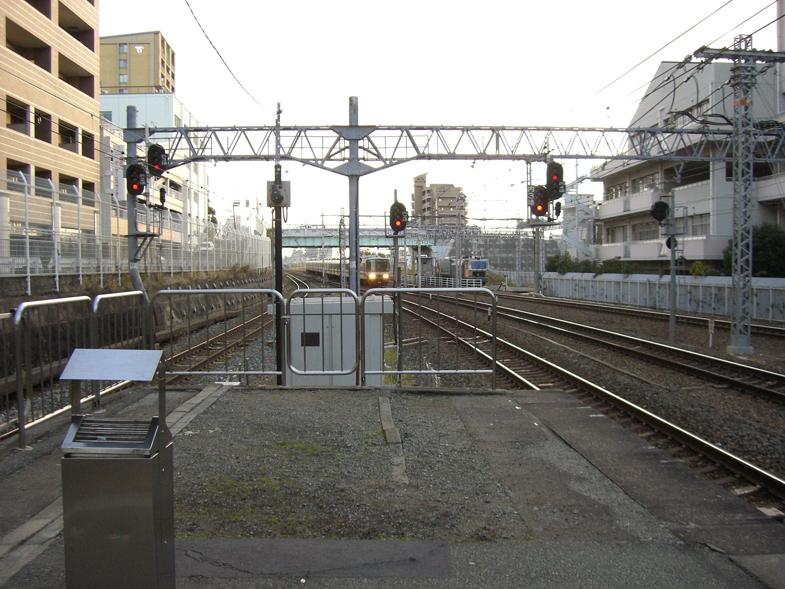 예전에는 화물역인 고베 항역으로 향하는 지선 (통칭 고베 임항선)이 분기했었지만, 2003년 12월 1일 고베 화물 컨테이너역이 개업하여 고베 항역이 폐지되었기 때문에 현재는 화물 열차나 회송 열차의 대피 (또는 운행 여객 열차를 먼저 추월하기 위해)와 비상시의 차량 유치를 위한 신호장이 되었다. 복복선 양쪽에 각각 1개씩의 대피선이 설치되어 있어 장편성 화물 열차의 대피에 대비해 총연장은 1km 정도이다. 한때 롯코미치역에서 진출입한 상하행 쾌속 열차가 이 신호장에서 외측선과 내측선을 서로 변경하는 시간표가 존재했었다.
