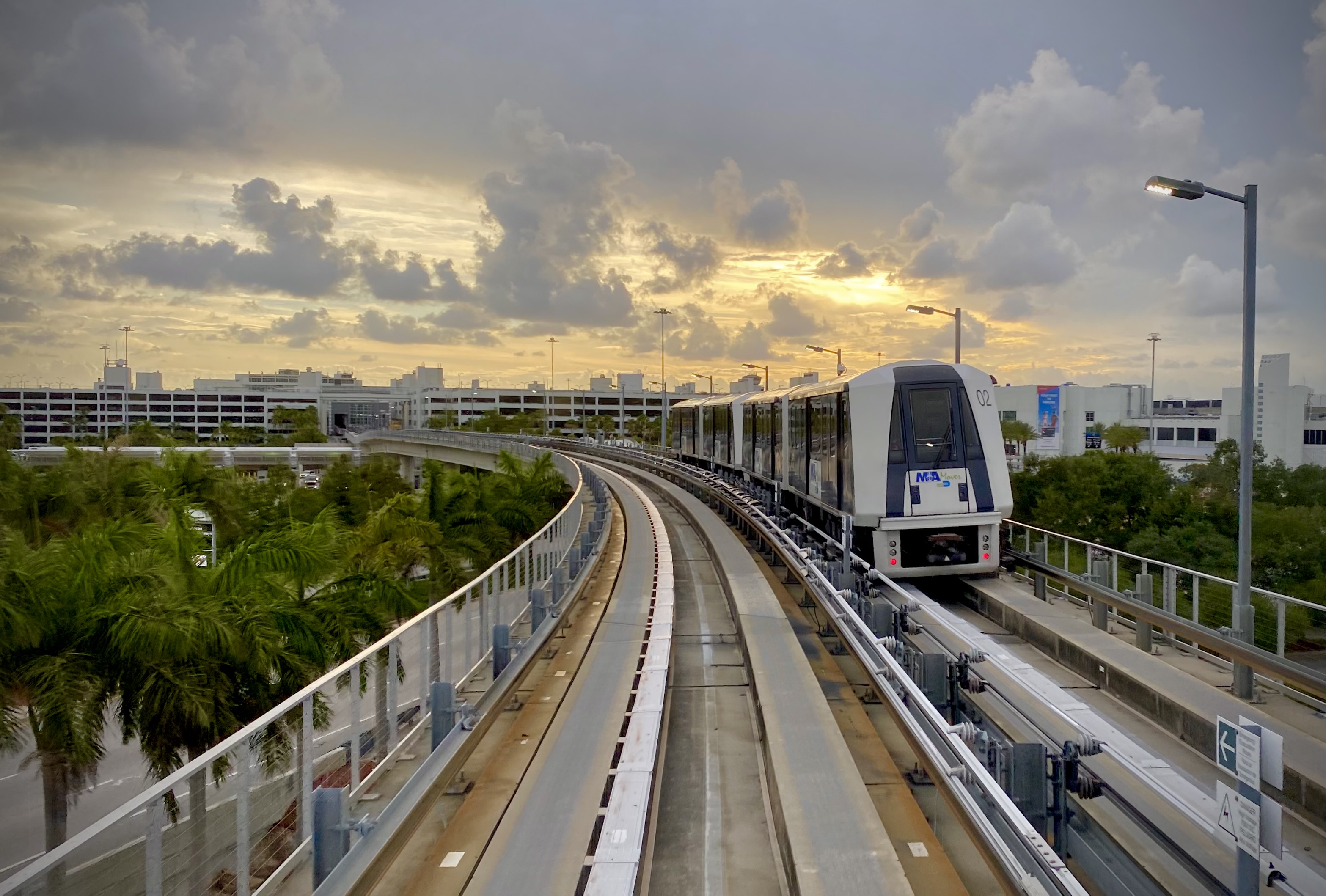 마이애미 국제공항에서는 각 터미널을 연결하는 스카이트레인 외에도, 센트럴 터미널의 MIA역과 마이애미 중앙역(Miami Central Station) 및 마이애미 인터모달 센터(Miami Intermodal Center)(MIC)에 있는 MIC역을 잇는 신교통시스템인 「MIA 무버」가 운행되고 있다.
