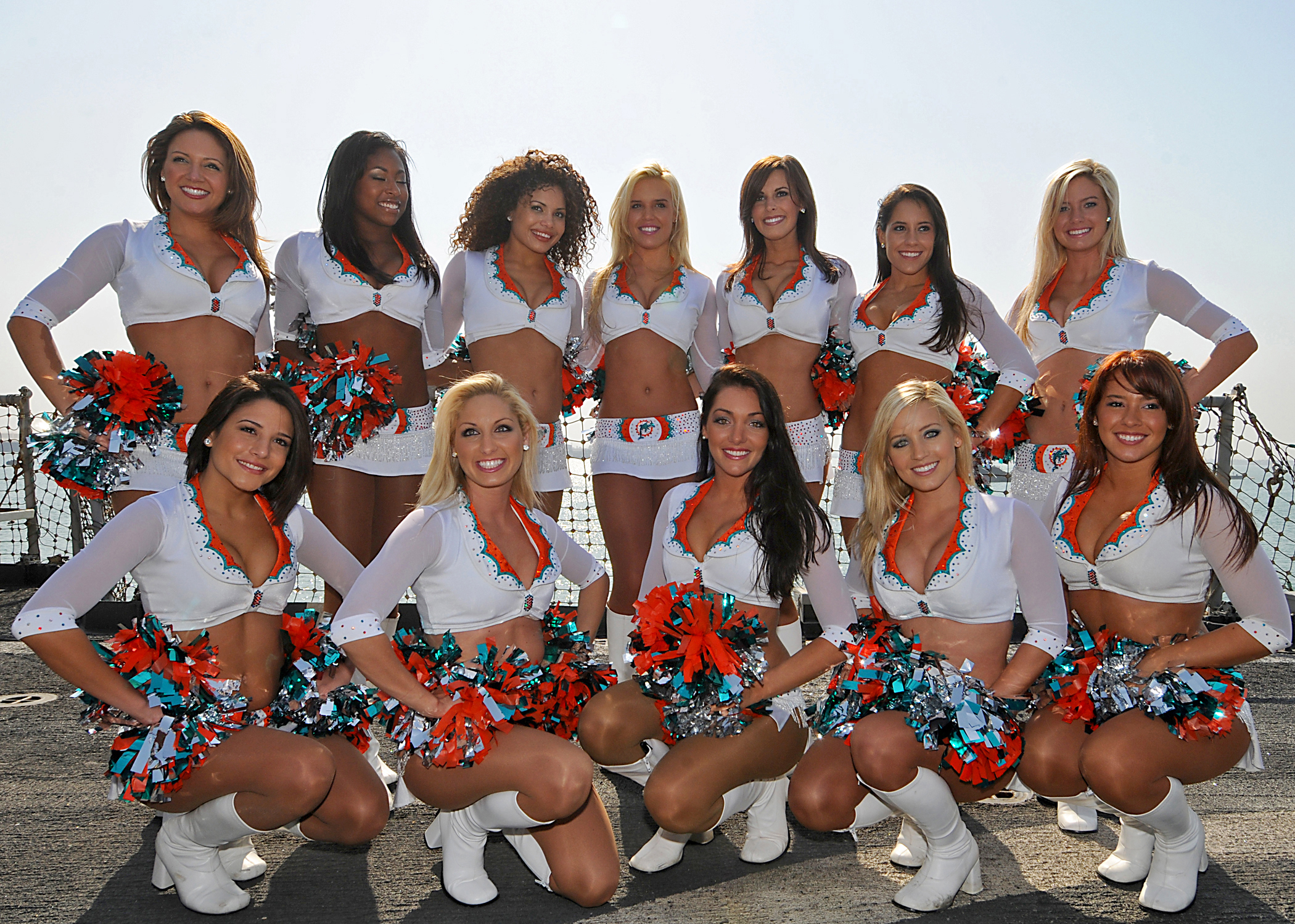 공식 치어리딩 팀인 마이애미 돌핀스 치어리더즈(Miami Dolphins Cheerleaders)는 경기일 등에 하드록 스타디움에서 다양한 춤을 선보인다. 매년 프로볼에 치어리더를 파견하고 있으며, 인디언 프리미어 리그에도 많은 졸업생을 보내고 있다.