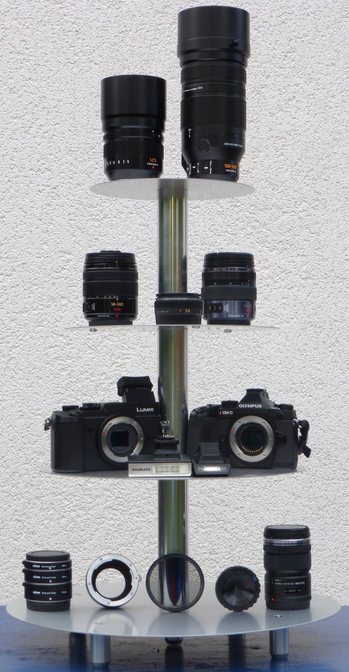 - 라이카 M, 라이카 R, 올림푸스 OM 시스템 렌즈를 파나소닉 및 올림푸스 어댑터를 통해 사용할 수 있다. 시판 어댑터로는 라이카 스크류 마운트, 콘탁스 G, C 마운트, Arri PL 마운트, 프락티카, 캐논, 니콘, 펜탁스 등이 있다.[10] 플랜지 초점 거리가 20mm보다 크거나 약간 작은 거의 모든 사진, 영화 또는 비디오 카메라의 렌즈를 어댑터를 통해 MFT 바디에 사용할 수 있다.