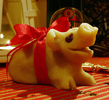 독일에서는 축하 선물로 돼지 모양의 "글뤽슈바인"(Glückschwein, "행복의 돼지")을 사용한다. 오스트리아나 독일 일부 지역에서는 섣달 그믐날에 이것을 주고받는 습관이 있다. 이탈리아의 시칠리아 등에서는 부활절에 어린 양 모양의 마지팬을 먹는 습관이 있다.