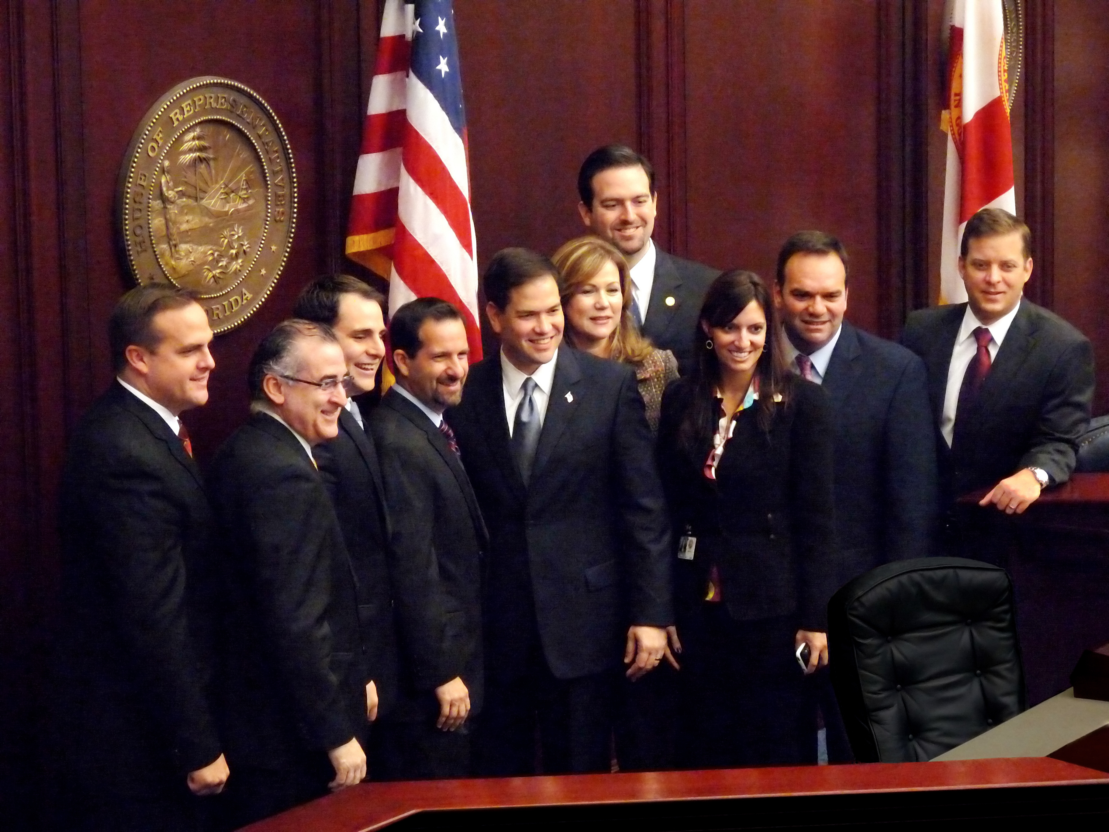 플로리다주 하원의원으로 활동하며 2007년부터 2009년까지 하원의장을 역임했다. 2010년 연방 상원의원 선거 출마를 결심하고 선거 운동에 집중하기 위해 2008년 주 하원의원 선거에는 불출마하여 2009년 초 임기가 만료되었다. 그는 쿠바계 이민자의 후손임에도 강경한 반이민 정책과 감세 정책 등 보수적 입장을 취하며 티파티 운동의 강력한 지지를 받았다. 이 과정에서 같은 공화당 소속으로 상원의원 출마를 준비하던 찰리 크리스트 당시 주지사를 공격했고, 크리스트는 이에 반발해 공화당을 탈당하고 무소속으로 출마했다.[373] 루비오는 2010년 11월 선거에서 48.9%의 득표율로 크리스트를 누르고 당선되었다.[374]
