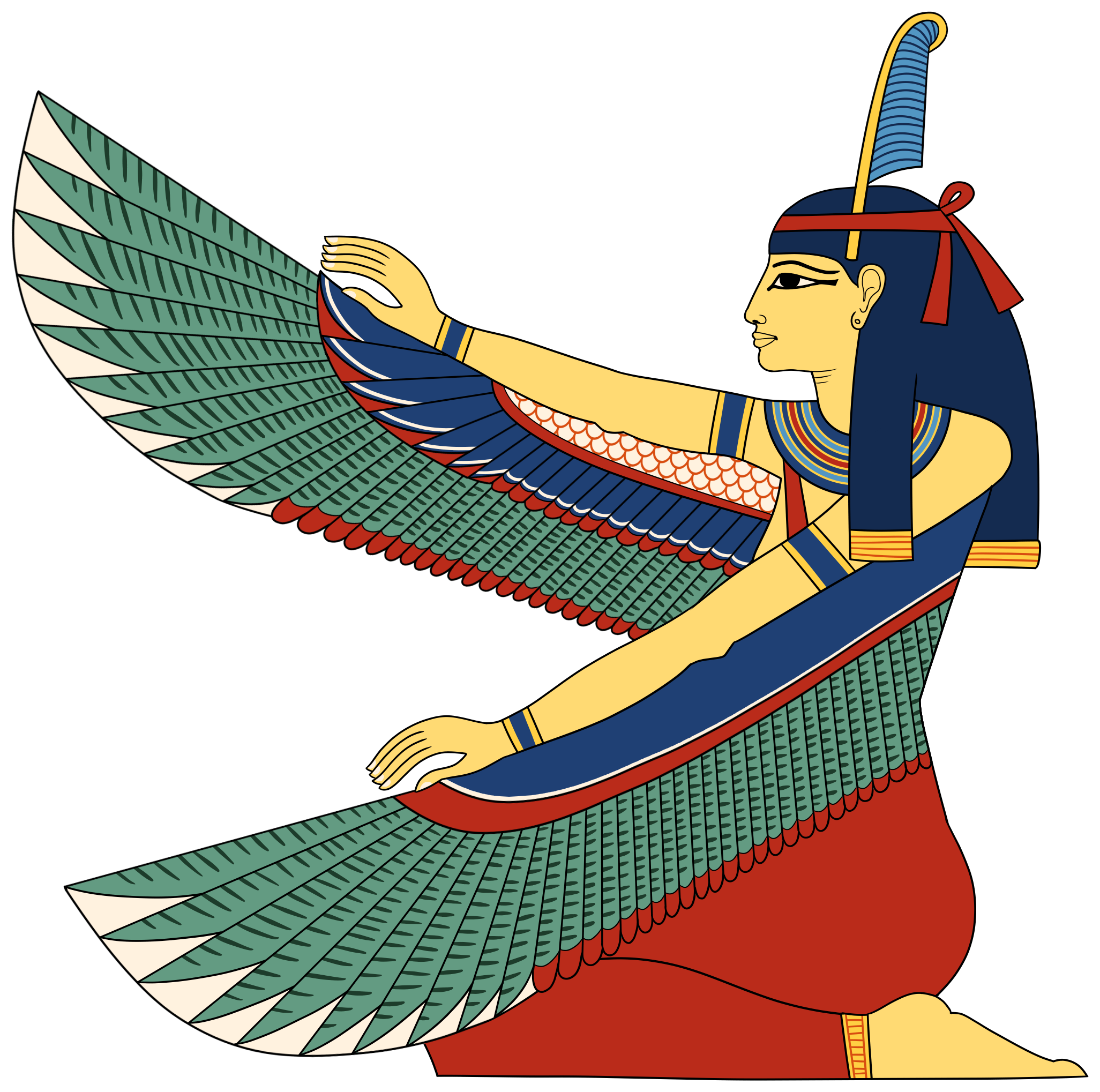 마아트는 고대 이집트 신화에서 조화, 정의, 진실을 상징하는 여신으로, 젊은 여성의 모습으로 묘사된다.[5] 때로는 양팔에 날개가 달리거나 머리에 타조 깃털을 꽂은 모습으로 나타나기도 한다.[5] 이 타조 깃털은 마아트의 오빠인 슈도 착용하는 상징이다.[5]