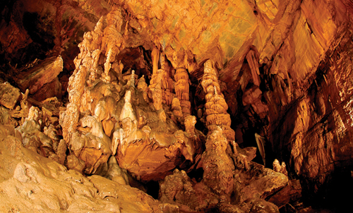 - 평창군 미탄면 마하리의 막동 석회암층 중에 발달하는 '''평창 백룡동굴'''은 전체적으로 동-서 방향으로 발달하는 수평굴이다. 동강댐 건설 백지화로 보존될 수 있었던 이 동굴은 주된 절리면을 따라 지하수면 근처에서 형성된 후 동굴 내부를 흐르는 지하수에 의해 확장된 것으로 볼 수 있다. 백룡동굴에는 에그프라이형 석순과 같은 특이한 동굴생성물이 발달한다.[23]