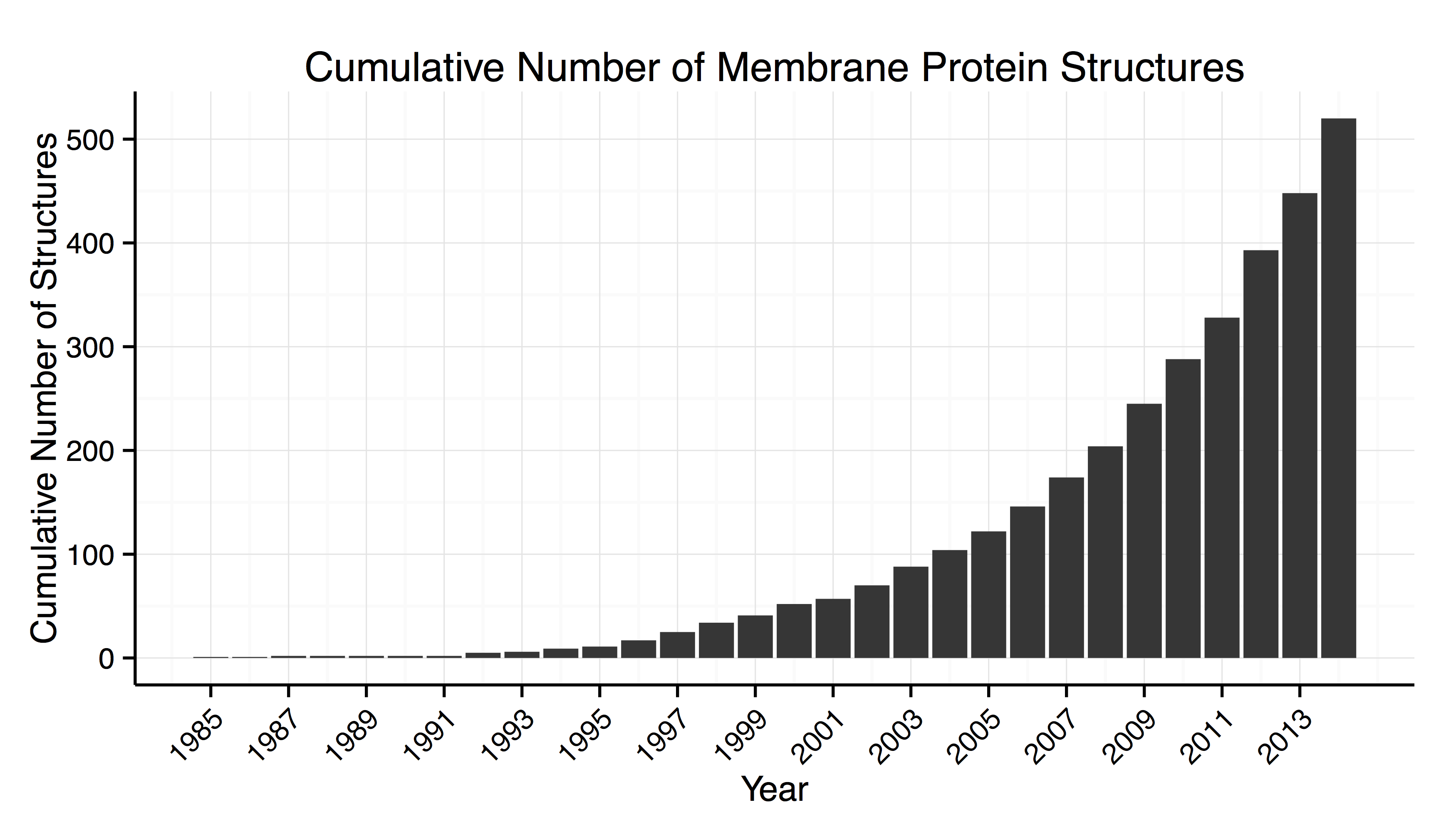 상대적으로 유연하고 소수성 표면을 가지며 낮은 수준으로 발현되는 막단백질은 충분한 단백질을 얻고 결정을 성장시키는 것이 어렵다. 따라서 막단백질이 기능적으로 매우 중요함에도 불구하고, 구상 단백질보다 원자 해상도 구조를 결정하기가 더 어렵다.[13] 2013년 1월 기준으로 전체 프로테옴의 20~30%를 막단백질이 차지하지만, 결정된 단백질 구조 중 막단백질은 0.1% 미만이었다.[14] 이러한 어려움과 막단백질의 중요성 때문에 소수성 도표, 양성 내부 규칙 등 여러 방법을 기반으로 하는 단백질 구조 예측 방법이 개발되었다.[15][16][17]