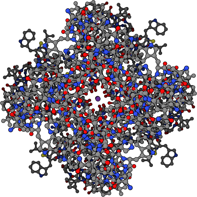 이온 통로는 세포 외부와 내부 사이에서 이온이 이동할 수 있는 통로를 제공하는 적분 막 단백질이다.[18] 대부분의 이온 통로는 특정 이온에 대해 선택적이며, 예를 들어 칼륨 통로는 칼륨과 나트륨에 대한 선택성 비율이 1000:1에 달한다. 이는 칼륨과 나트륨 이온의 전하가 같고 반경 차이가 작다는 점을 고려하면 놀라운 특성이다.[17] 이온 통로의 구멍은 매우 작아서 이온들이 한 줄로 통과해야 한다.[18]