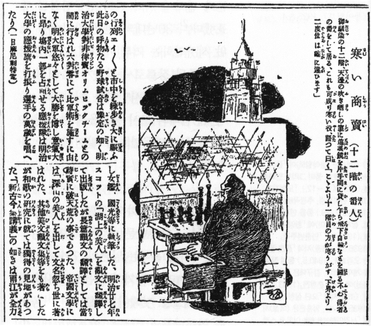 만문만화는 일본의 만화가 오카모토 잇페이가 1913년 《아사히 신문(朝一新聞)》에 연재한 만화만문 〈썰렁한 노점-십이층의 파수꾼〉에서 그 유래를 찾을 수 있다.[5] 그림 위에 글이 따로 쓰였다는 형식적인 면에서, 또 "예리하고 풍자적이지만 심하게 불쾌하지 않고, 잔혹하지 않다"는 평을 받았듯[6] 내용적인 면에서 만문만화의 원형을 볼 수 있다.