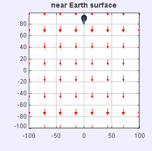 ''m''1이 질점이거나 균일한 질량 분포를 가진 구의 질량인 경우, 구 외부의 힘장 '''g'''('''r''')는 등방성이며, 구의 중심으로부터의 거리 ''r''에만 의존한다. 이 경우