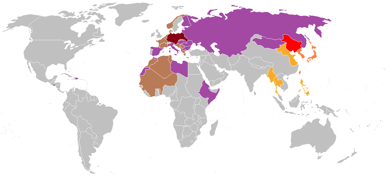 1931년일본 제국 육군의 관동군은 만주 사변을 일으켜 만주 지역을 점령하였다. 1932년3월 1일 일본은 청나라의 마지막 황제였다가 퇴위한 선통제를 황제(강덕제)로 내세웠다.[210] 만주국은 일본 제국에 철저히 종속된 괴뢰국가였다.[210] 만주국의 영역은 한반도, 중화민국, 소련, 몽골 인민 공화국, 내몽골 자치 연합 정부(일본의 식민지 정권)와 국경을 접하고 있었다. 만주국은 만주족, 한족, 몽골족, 한민족, 야마토 민족의 오족협화로 이루어진 “만주인”에 의한 민족자결의 원칙에 기초한 국민국가를 표방했으나, 실제 통치는 일본 제국 관동군이 주도하였다.