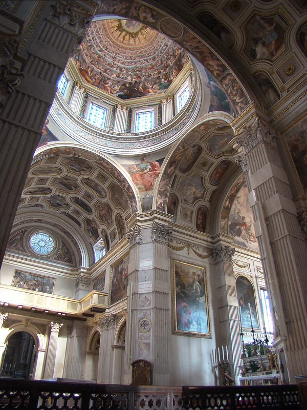 돔은 팔각형 드럼을 갖추고 있지만 랜턴은 없다. 높은 제단은 다색 대리석으로 만들어졌으며 조각된 나무 십자가로 덮여 있다. 이폴리토 안드레아시와 테오도로 기시는 프란체스코 곤자가 주교를 위해 천장과 돔을 그렸다.