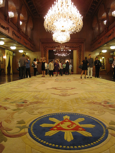 1930년대에 설치된 정교한 천장은 저명한 조각가 이사벨로 탐핑코(Isabela Tampingco)가 격자 무늬 배경에 꽃병을 묘사하여 조각한 것이다. 큰 거울, 금박 소파와 안락의자, 그리고 식물과 꽃꽂이를 놓은 중국 청동 받침대가 방을 장식하고 있다. 탐핑코의 목공예는 곡선이었고, 어떤 사람들에게는 방이 관 모양처럼 보였다. 이것이 바로 1979년 개보수 공사에서 탐핑코의 작품이 마주 보는 두 개의 발코니로 대체된 이유이다.[16]
