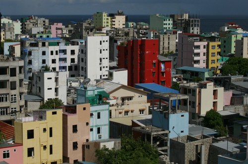몰디브는 지구 온난화로 인한 해수면 상승으로 수몰 위기에 처해 있으며, 2008년부터 말레 서쪽 인근의 구루히 팔후 산호초에 수상 도시 건설이 진행 중이다.[40][41][42][43]