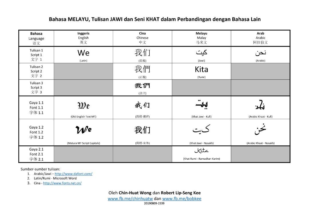 문자 | 로마자 (루미) 아랍 문자 (자위) 말레이시아 점자 |