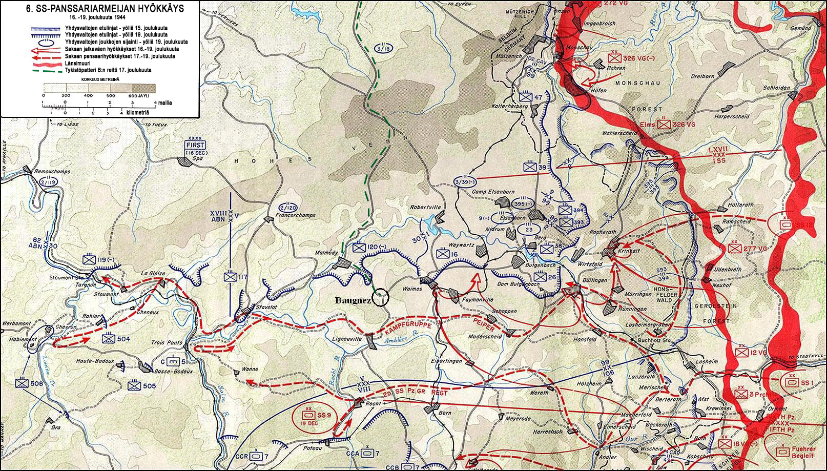 제3제국의 아르덴느 공세(1944년 12월 16일~1945년 1월 25일)의 목표는 SS 장군 제프 디트리히가 지휘하는 제6 SS 기갑군이 몬쇼와 로스하이머그라벤 사이의 연합군 전선을 돌파하여 뫼즈 강을 건너 앤트워프시를 공격하고 점령하는 것이었다.[2][3]