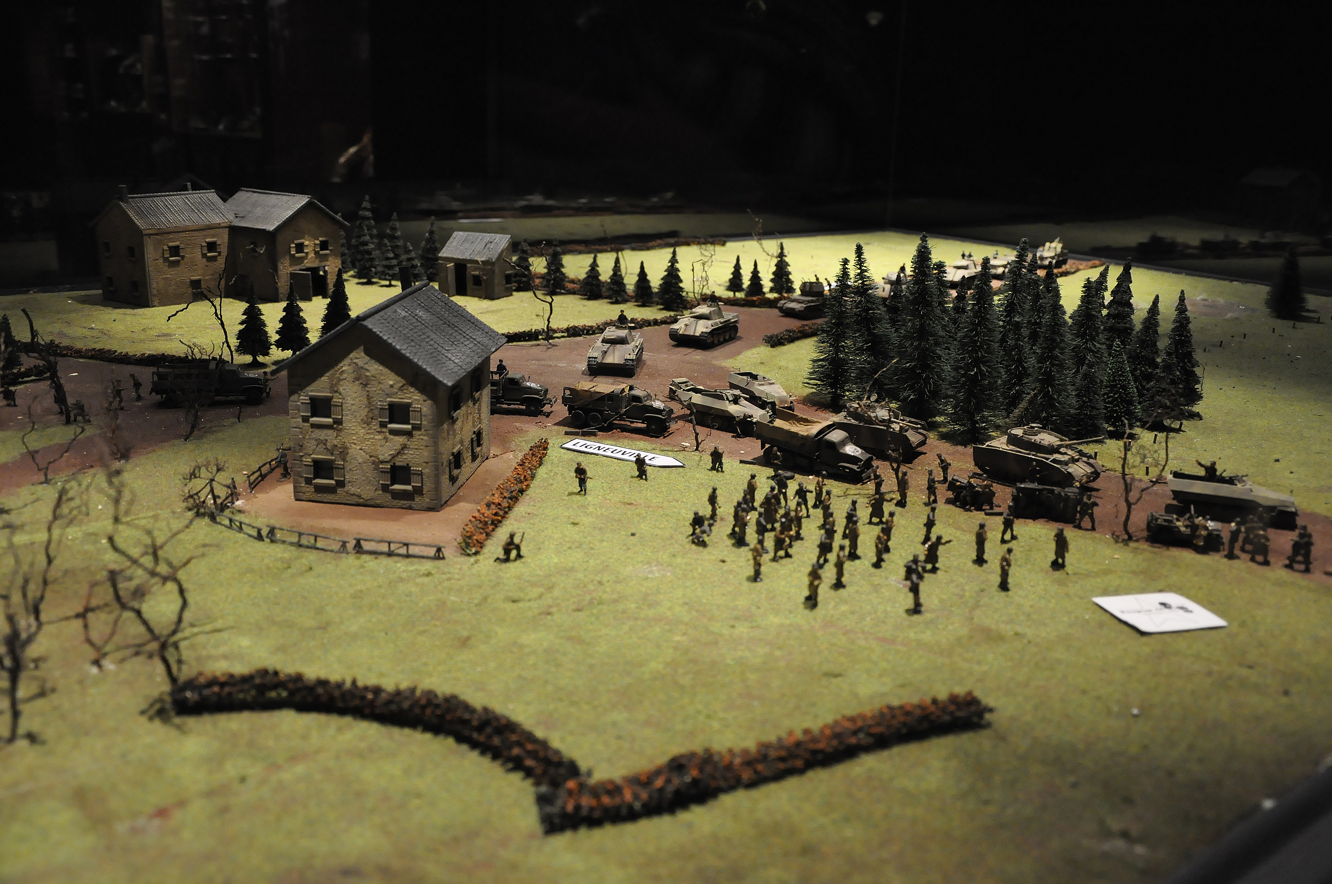 제6SS기갑군 선봉, 요아힘 파이퍼 친위대 중좌의 파이퍼 전투단은 근처 교차로(파이브 포인츠)로 진군했다. 전투단은 파이브 포인츠 남동쪽 이동 중, 차량 이동 효율을 위해 동쪽 도로로 나왔다.[18] 파이퍼 전투단은 오전 미군 반격으로 작전이 12시간 지연되었다. 베르너 슈테른에베크 SS중위의 선도 소대는 전차 7대와 공병소대(하프트랙 탑승) 구성이었으나, 전차 2대와 하프트랙 2대만 남았다.[17]