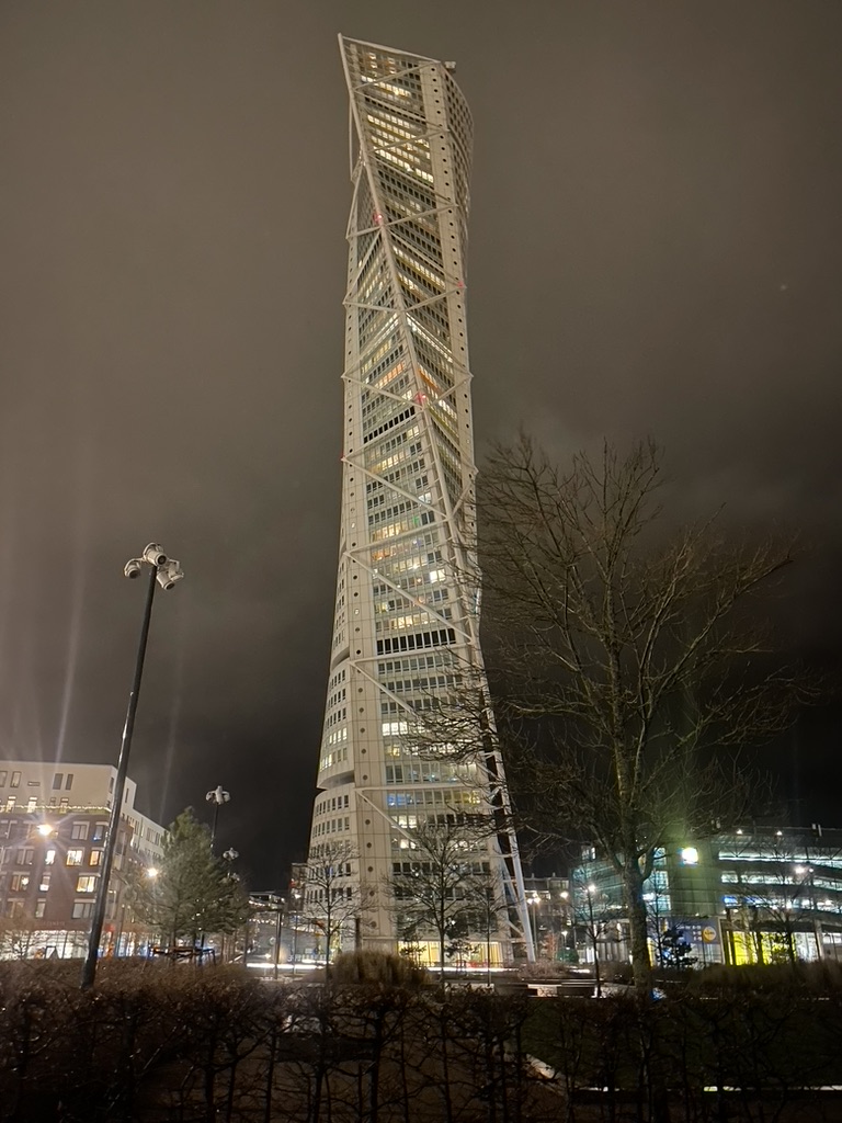 스웨덴 말뫼에 위치한 193m 높이의 주거용 건물인 터닝 토르소는 5개 층 블록 9개가 수직 코어를 중심으로 90도 회전하는 독특한 외관을 지녔으며, 산티아고 칼라트라바의 조각 작품에서 영감을 받아 건설되었고 코쿰스 크레인 철거 후 말뫼의 상징이 되고자 했다.