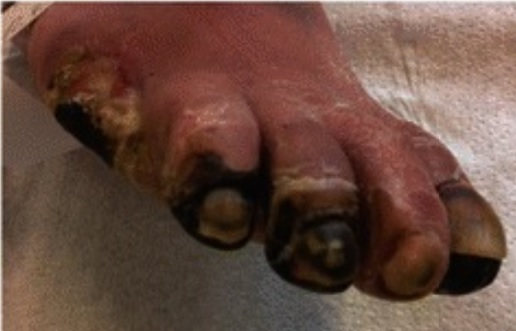 4단계 | 사지의 궤양 또는 괴사 |