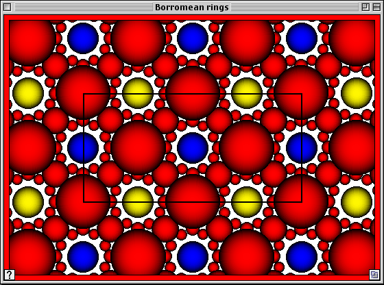 기하학은 우리가 기하학의 측지선을 따라 빛의 광선이 이동한다고 상상함으로써 매듭 또는 고리 여집합 내부가 어떻게 보이는지 시각화할 수 있게 해준다. 한 예로 보로미안 고리의 여집합 그림을 들 수 있다. 이 고리 여집합의 거주자는 빨간색 구성 요소 근처에서 공간을 보고 있다. 그림 속의 구는 고리의 호로구 이웃의 관점이다. 표준적인 방식으로 고리를 두껍게 함으로써 고리 구성 요소의 호로구 이웃이 얻어진다. 이웃의 경계는 토러스이지만, 고리 여집합 내부에서 보면 구처럼 보인다. 각 고리 구성 요소는 관찰자에서 고리 구성 요소까지 무한히 많은 광선이 있기 때문에 무한히 많은 구(단색)로 나타난다. 기본 평행 사변형(그림에 표시됨)은 수직 및 수평으로 모두 타일을 이루며 구의 패턴을 무한히 확장하는 방법을 보여준다.