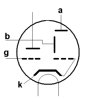 내부적으로 두 개의 판 전극 어셈블리로 구성되는데, 하나는 삼극 증폭기, 다른 하나는 규산 아연 등으로 코팅된 원뿔 모양 타겟 양극으로 구성된 디스플레이 섹션이다. 삼극관-증폭기 섹션의 제어 그리드는 신호 강도에 따라 달라지는 음의 제어 전압을 사용할 수 있는 지점에 연결된다. 예를 들어 AM 슈퍼헤테로다인 수신기의 자동 이득 제어(AGC) 라인, 또는 FM 수신기의 리미터 스테이지 또는 FM 검파기 등에 연결된다.[5][6]