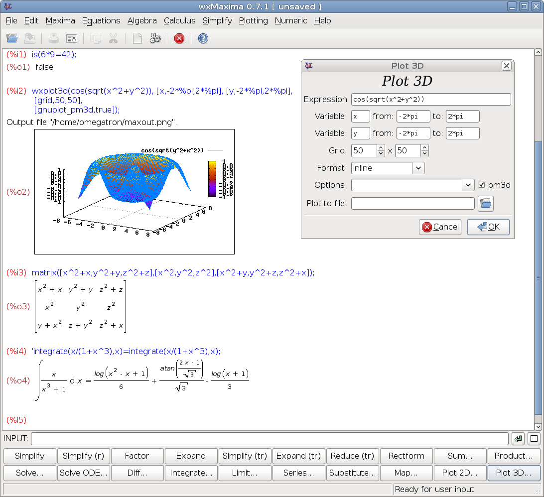 wxMaxima, a document based interface for the computer algebra system Maxima