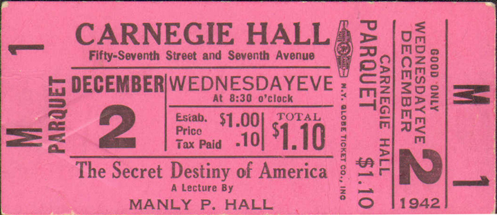홀은 1945년 카네기 홀에서 또 다른 많은 청중이 참석한 강연을 열었는데, 그 제목은 "플라톤의 세계 민주주의 예언"이었다.[9]