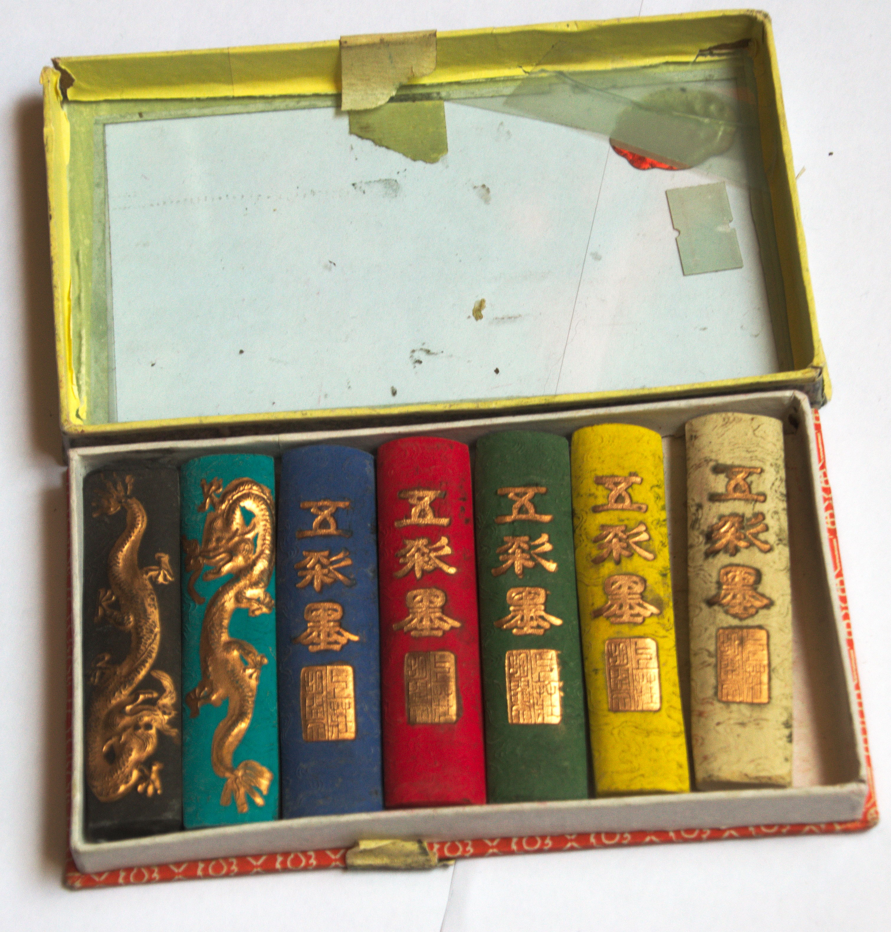 - '''그을음''': 그을음은 동유(桐油), 콩기름, 차유(茶油), 라드와 같은 기름이나 소나무와 같은 나무를 산소가 부족한 상태에서 태워 얻는다.[5]