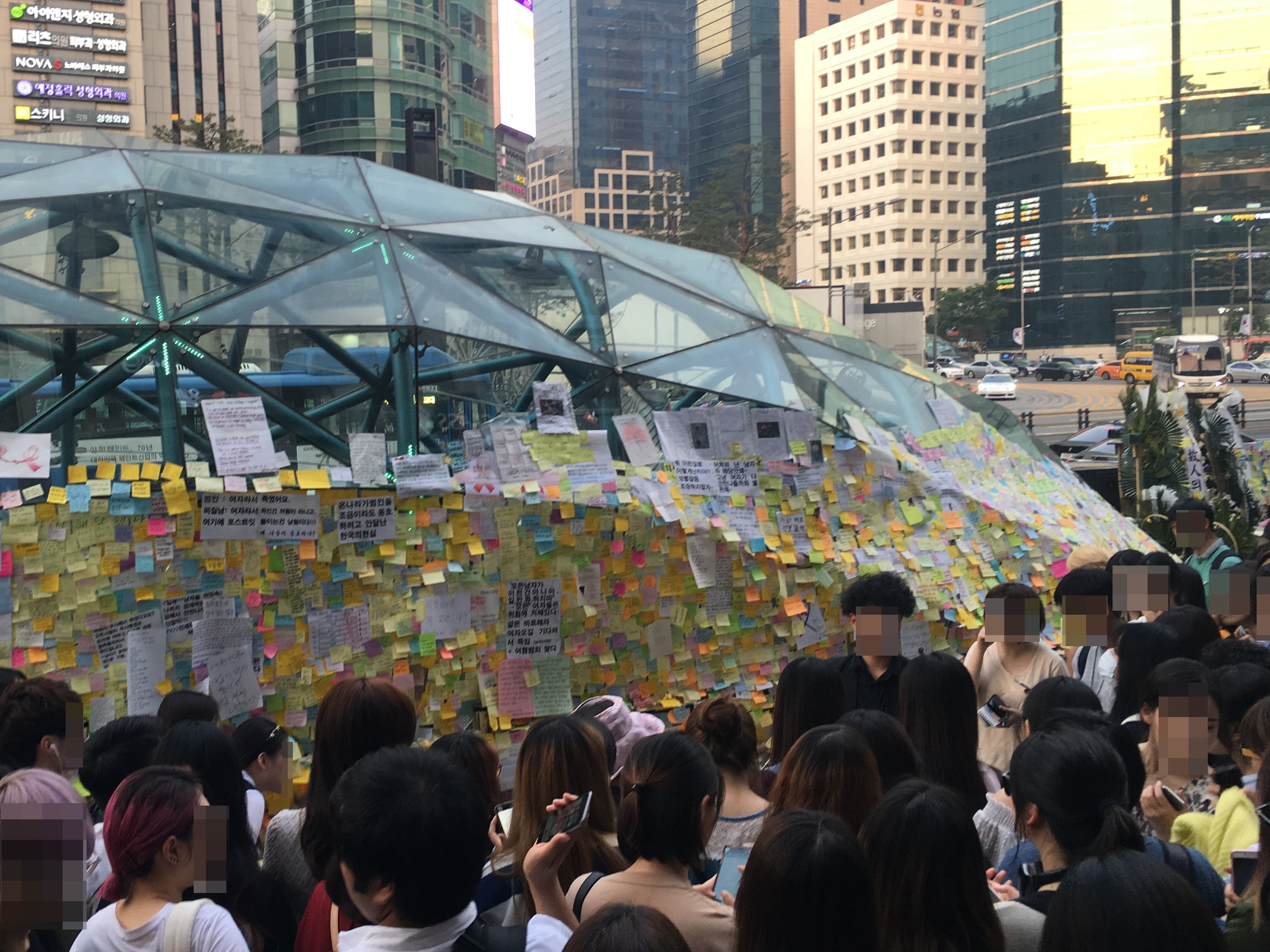 2016년 5월 17일, 서울 강남역 근처 노래방 화장실에서 한 남성이 여성을 흉기로 살해한 사건에 대해, 피해자를 추모하고 여성 폭력에 대한 인식을 높이기 위해 일련의 야간 행진을 조직하는 데 기여했다.[5]